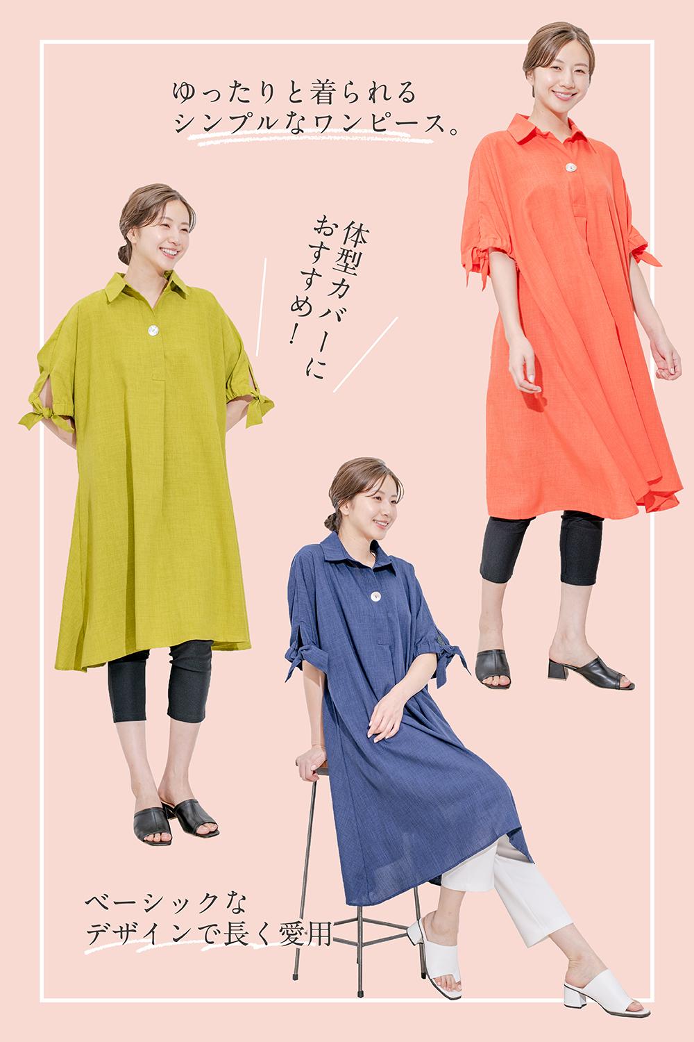 身体のラインを拾いにくく、体型カバーにおすすめなアイテムです。シャツ襟デザインなので、リラクシーでありながらきちんと感があります。