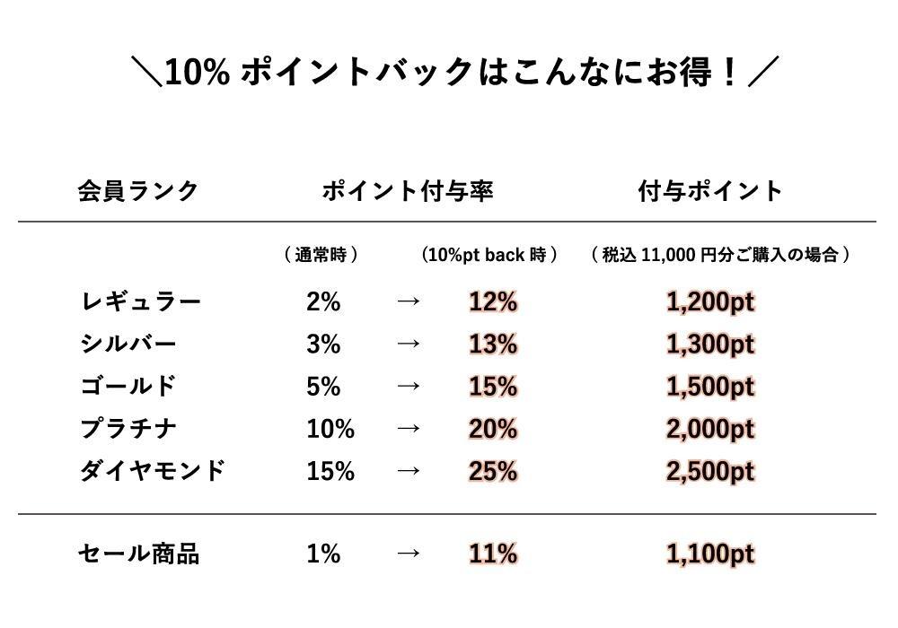 金額・ランクに合わせてジュングループにてご利用いただけるJUN GLOBAL IDのポイントを+10%アップで還元。