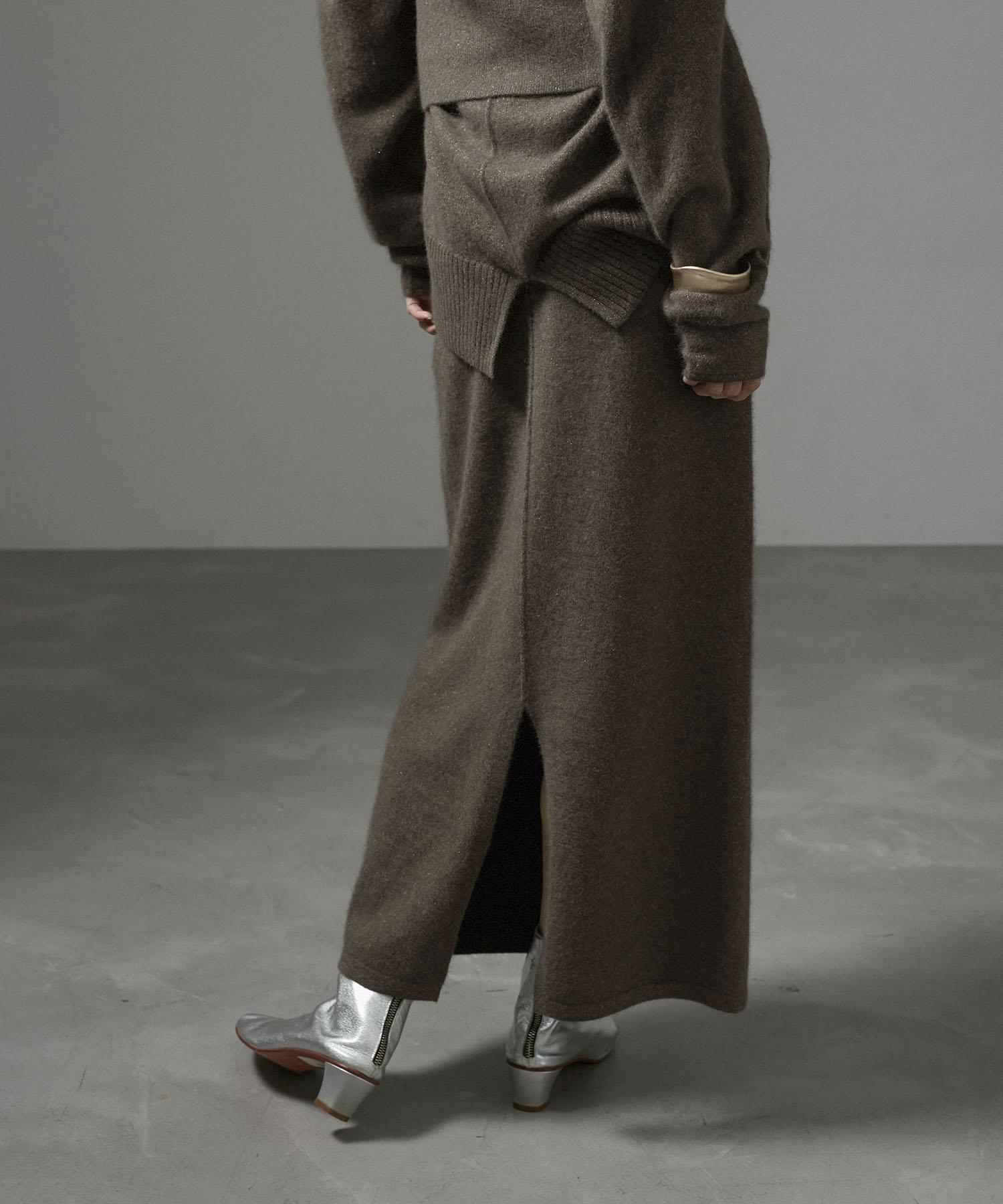 FOX WOOL混のフェアリーでやわらかな印象の糸に、繊細なラメをMIXした華やかなニットスカートです。