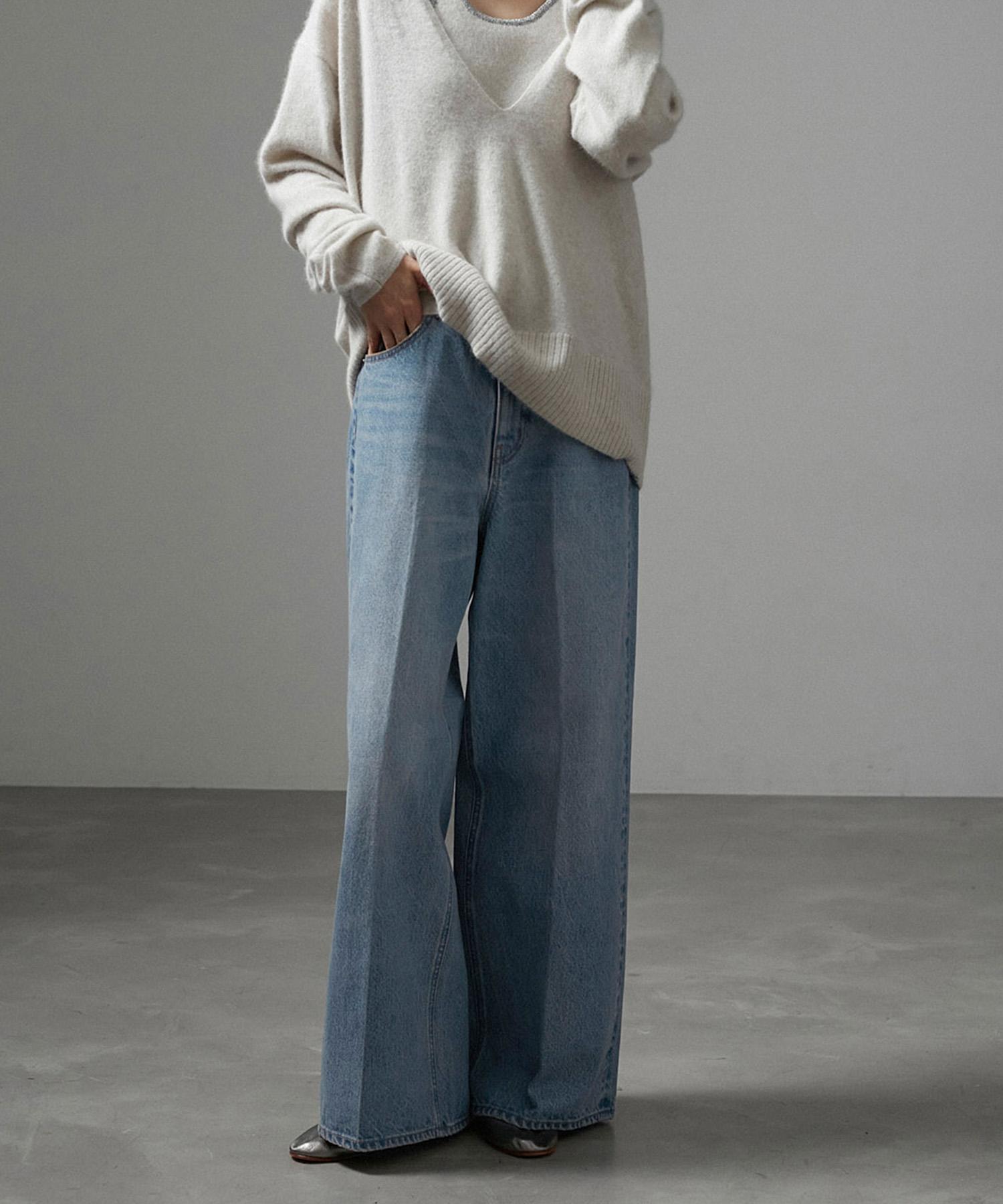 ルーズなヴィンテージの風合いとセンタープレスのバランスが魅力。クロキデニム生地を使用したバギーデニム。