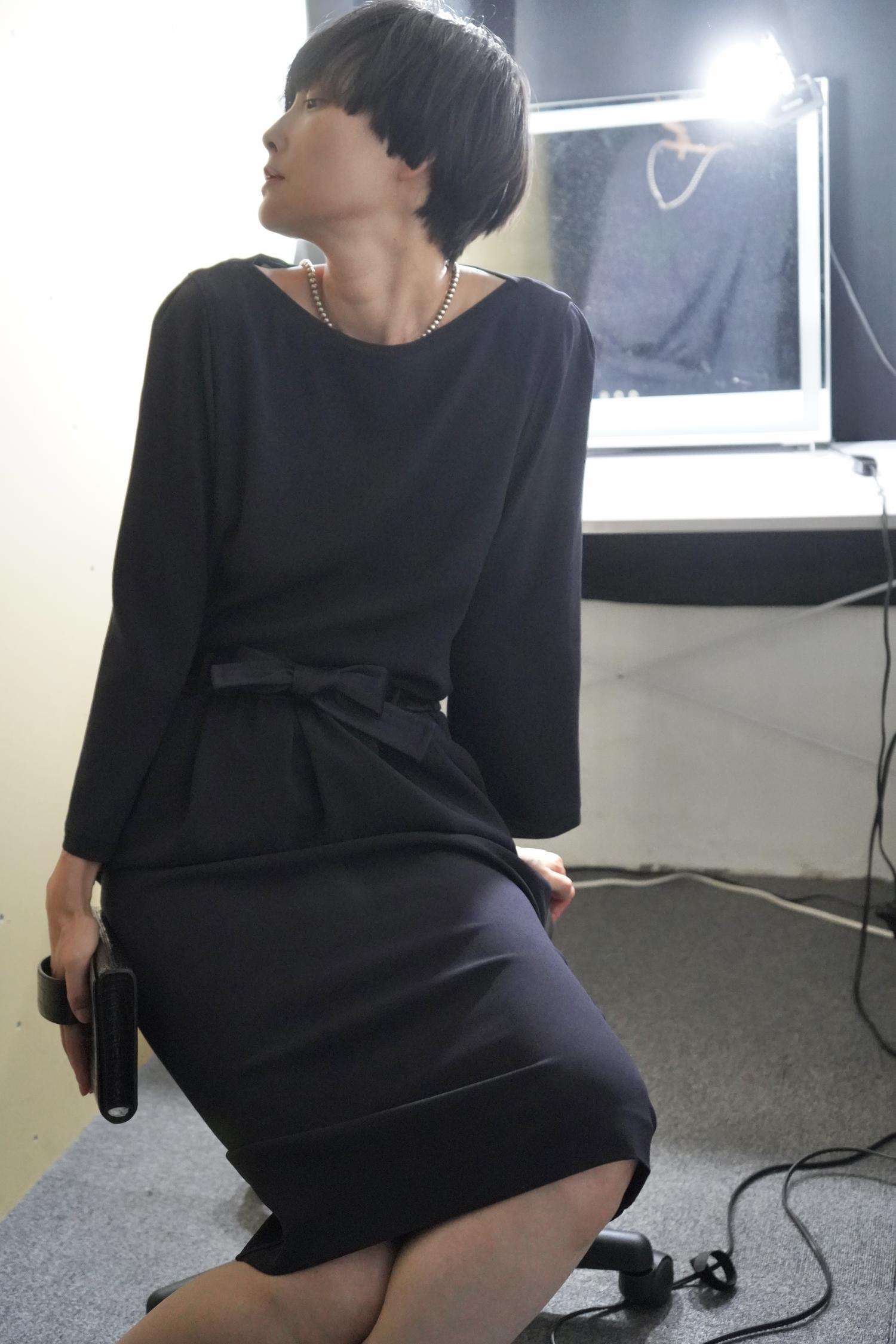 シャープな印象がありながら、タックで作られるドレープは美しく身体の線をカバーしてくれます。