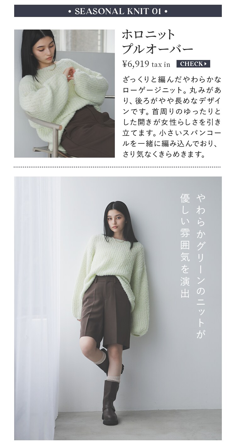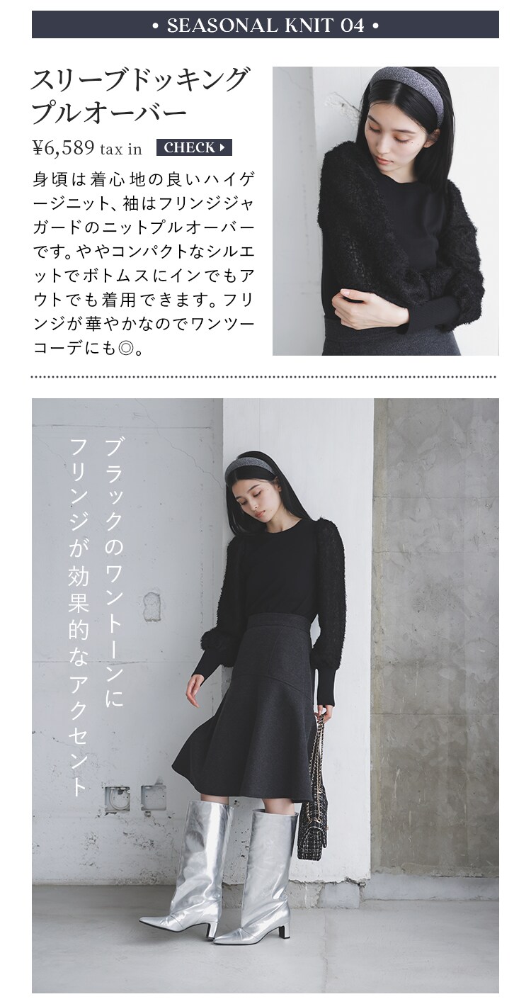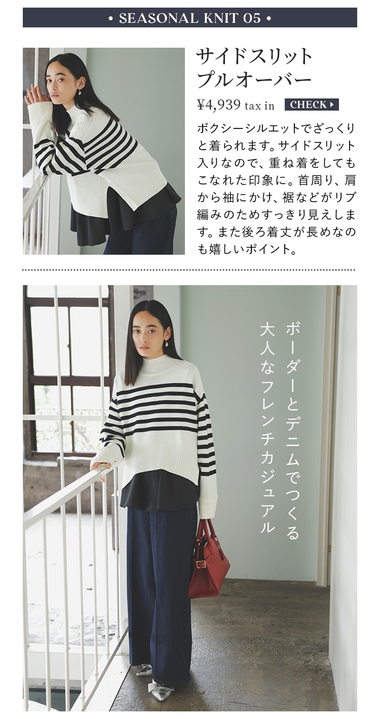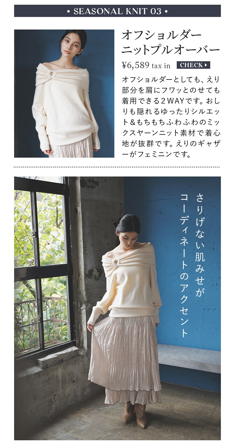 寒くなってきた今!おすすめしたいトレンドニット6選 2024.10.16 毎年更新したいニット。今回は使いやすく、着映えのするニットをコーディネートとともにご紹介します。カラバリ豊富なニットにも注目。ぜひチェックしてください! SEASONAL KNIT01 SEASONAL KNIT02 SEASONAL KNIT03 SEASONAL KNIT04 SEASONAL KNIT05 SEASONAL KNIT06 KNIT ¥6,919 (tax in) CHECK 50%OFF VIS ブークレホロHUGニットプルオーバー ¥3,460(税込) アウトレット 60%OFF VIS エンジニアブーツ ¥4,000(税込) アウトレット KNIT ¥4,389 (tax in) CHECK 60%OFF VIS 【新色追加】リブニットプチハイネックプルオーバー【低身長向けサイズ有】 ¥1,756(税込) アウトレット 60%OFF VIS ストレッチヒールショートブーツ ¥4,396(税込) アウトレット VIS 【美easy】ウーリッシュ2タックワイド/スラックスパンツ【洗える】 ¥5,929(税込) KNIT ¥6,589 (tax in) CHECK 50%OFF VIS 【2WAY】ミックスヤーンオフショルダーニット ¥3,295(税込) アウトレット 60%OFF VIS ワイドロングブーツ ¥5,192(税込) アウトレット KNIT ¥6,589 (tax in) CHECK 60%OFF VIS ワイドロングブーツ ¥5,192(税込) アウトレット 60%OFF VIS 【洗える】ジャージメルトンニーレングスセミフレアスカート ¥3,076(税込) アウトレット KNIT ¥4,939 (tax in) CHECK 40%OFF VIS 【ご好評につき追加生産】ビッグリボンパンプス ¥4,745(税込) アウトレット 60%OFF VIS 【アンチピリング/洗える】サイドスリットニットプルオーバー【WEB限定カラー】 ¥1,976(税込) アウトレット 10%OFF VIS アシンメトリーフレアーシャツ ¥5,336(税込) KNIT ¥6,589 (tax in) CHECK 60%OFF VIS モヘアライクメッシュスパンコールニットプルオーバー ¥2,636(税込) アウトレット VIS 【新色追加】ロゴマーク刺繍キャップ ¥3,289(税込) VIS 【PUMA】モーフィックBASE【J'aDoRe JUN ONLINE限定】 ¥9,900(税込) VIS 【美easy】ウーリッシュ2タックワイド/スラックスパンツ【洗える】 ¥5,929(税込) その他ニット一覧はこちら ページTOPに戻る▲ Winter Dress-Up Moments|「ワンピース×アウター」冬のお出かけLOOK 寒さが深まる季節にぴったりな、旬のアウターとワンピースコーデをたっぷりご紹介! 大人女子に似合う洗練された着こなしから、デイリーにも休日にも使える実用的スタイルまで、1枚で存在感のあるワンピースに、着回し力の高いアウターを合わせたトレンドルックをVISスタッフが提案します。 今年らしいレイヤードやカラー使いで、冬のファッションがもっと楽しくなるアイデアをお届け。 BAG COLLECTION|この冬に欲しい!注目バッグ大集合 VISの2025年注目の"トレンド&定番”バッグを一挙にご紹介! 通勤の快適さとファッション性を両立させる「通勤バッグ」からVISならではの高見えトレンドデザインの「お出かけバッグ」、 さらに新作からWEB限定までこちらのページであなただけのお気に入りバッグが見つかります! 洗練されたデザインと機能性も備えたバッグは、これからの季節にあなたの毎日をスマートにアップデートしてくれるはず。 ときめき♡HOLIDAY COLLECTION starring Aki Suda 超ときめき♡宣伝部 菅田愛貴さんが着こなすときめき♡ホリデーコレクション 華やかムードに包まれて心が躍る冬は、とっておきの洋服を着て、思い出を彩ろう! ふわふわ素材やリボンディテールなど、この季節にぴったりなアイテムは要チェックです。 Winter Glow TOPS|キーワードで探す「冬の旬トップス 」 冬の気配が深まるこの季節。ふんわり暖かく、それでいて「今っぽさ」も叶える――そんな“冬の旬トップス”を集めました。 #グリッド #ビジュー #パール #デザインのキーワードごとに素材やディテールもチェックできます♪ アウター着ても、脱いだ後も主役級の存在感ばかり。重ね着だけに頼らず、1枚で冬コーデを格上げする、この冬おすすめのトップスをあなたに。 2025 WINTER PRE SALE 今買い足しで使えるアイテムから冬に向けて手に入れていきたいアイテムまでプライスダウン! 毎日のコーデが楽しくなる、お得なチャンスをお見逃しなく! Merry PRICE, Timeless TOPS|今だけじゃない。長く愛せるコスパ服 “今だからこそ手に入れたい”お得な Merry PRICE で、この冬から春まで長く活躍する優秀トップスをラインナップ。 冬は重ねて暖かく、春には1枚でさらりと着映える。 気分やシーンに合わせて着回しができ、デイリーに自然と馴染むアイテムばかりです。 季節を越えて頼れる万能さと、いま嬉しいプライスを両方叶えたVISのトップス。 レビュー投稿で いつでも[50ポイント]プレゼント! 対象品はマイページの購入履歴からチェック 詳細はこちらから