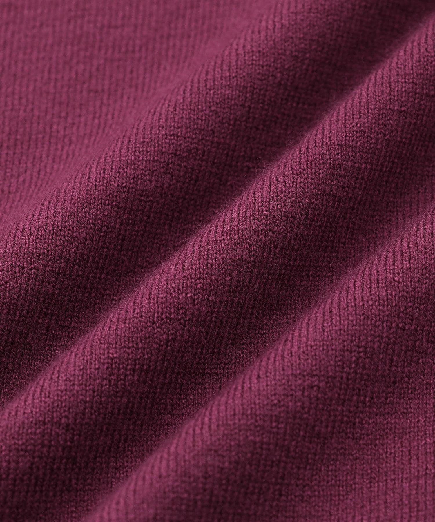なめらかで肌触りの良い、もちもちとしたアクリル混素材。程良い厚みのニット生地で秋から春までロングシーズン活躍の1枚。