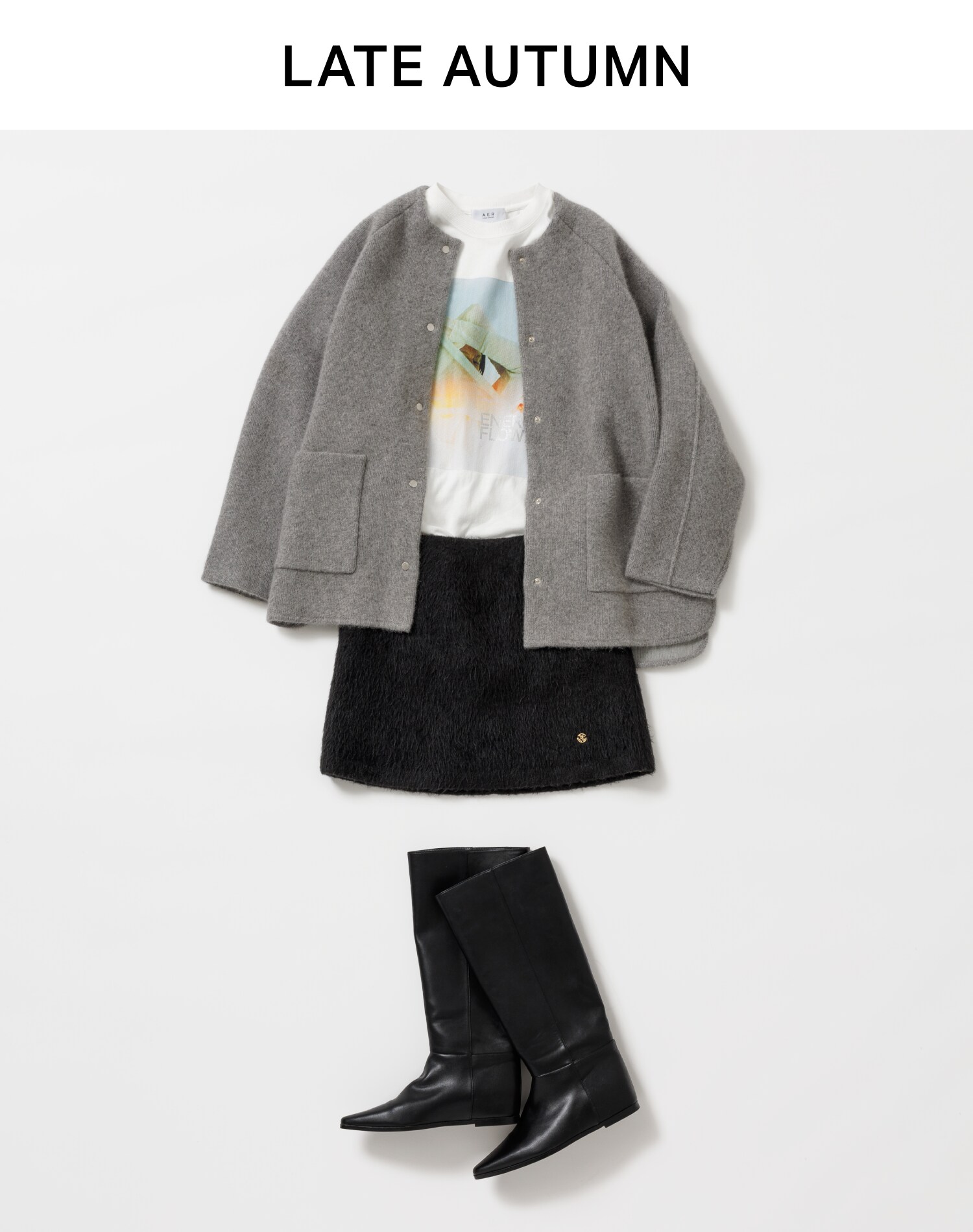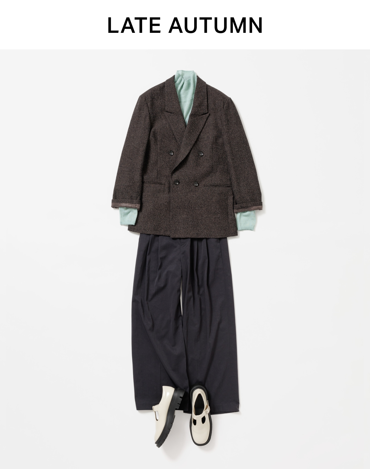 晩秋、冬、春の着回しコーディネートとあわせてご紹介します。