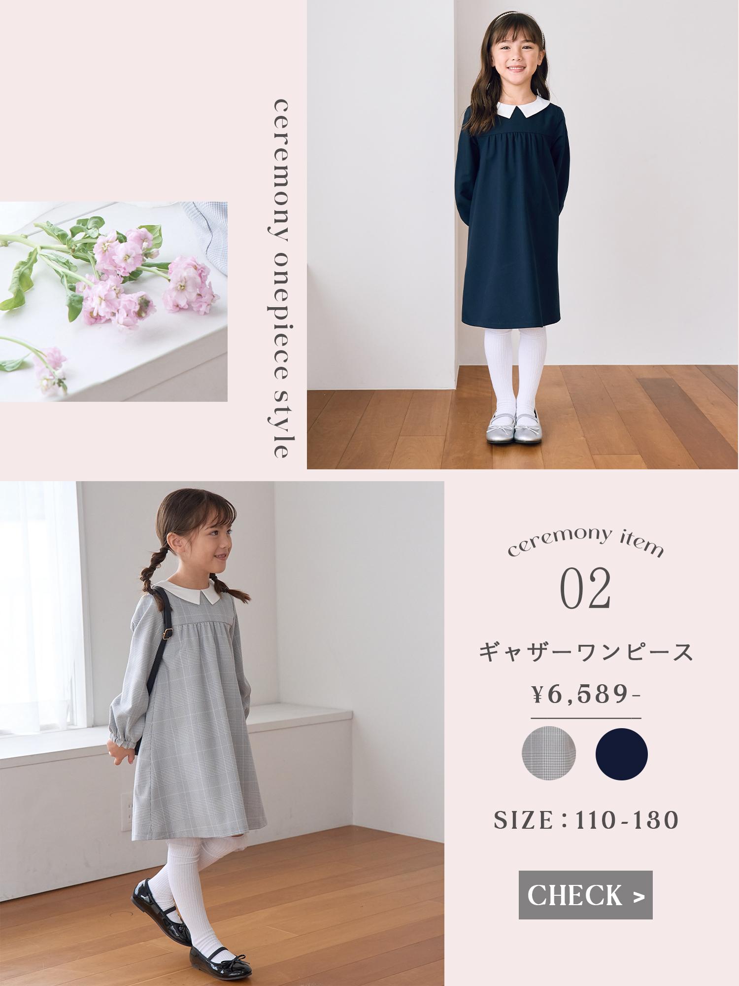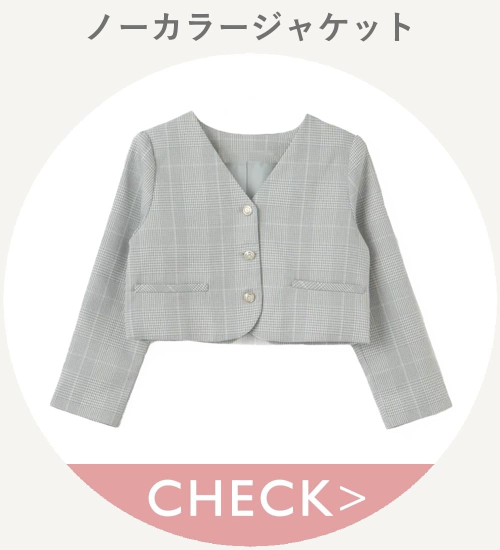 インナーには丸襟ブラウスや、スタンドカラーのカットソーを