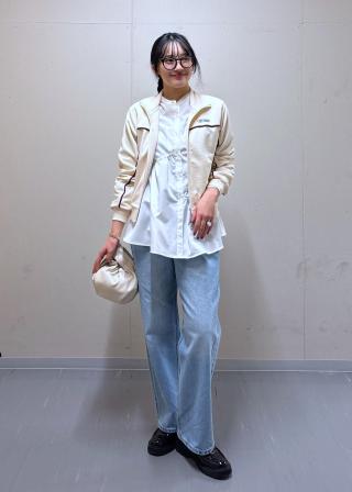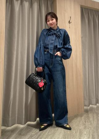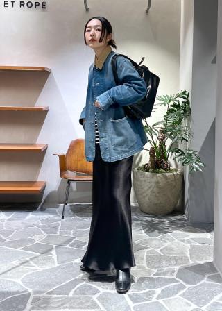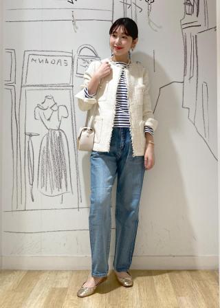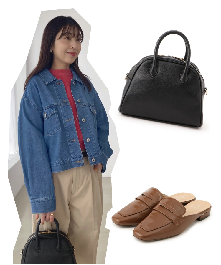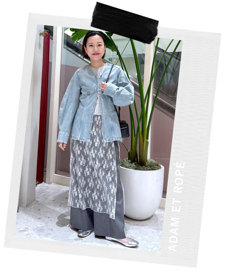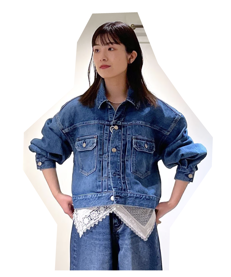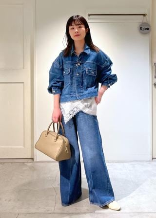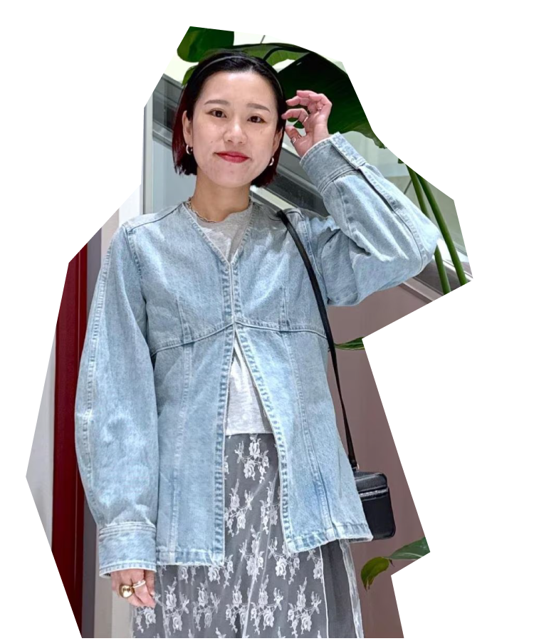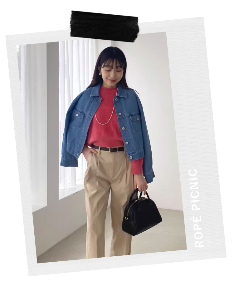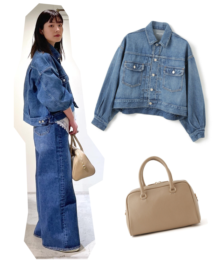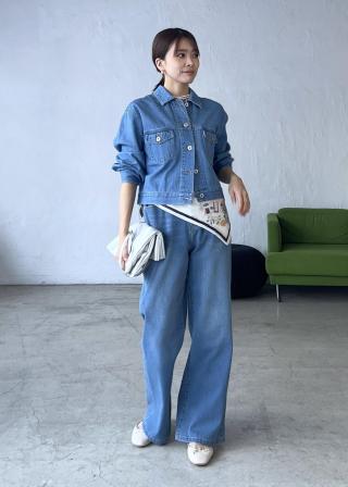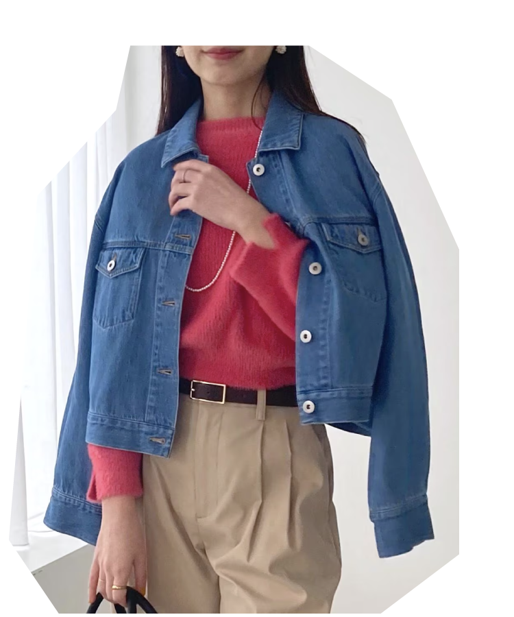 ややワイド気味でありながら短丈シルエットのデニムジャケットは、メンズライクなイメージのデニムを女性らしく魅せてくれるので、カジュアルオフィスコーデにもピッタリ。