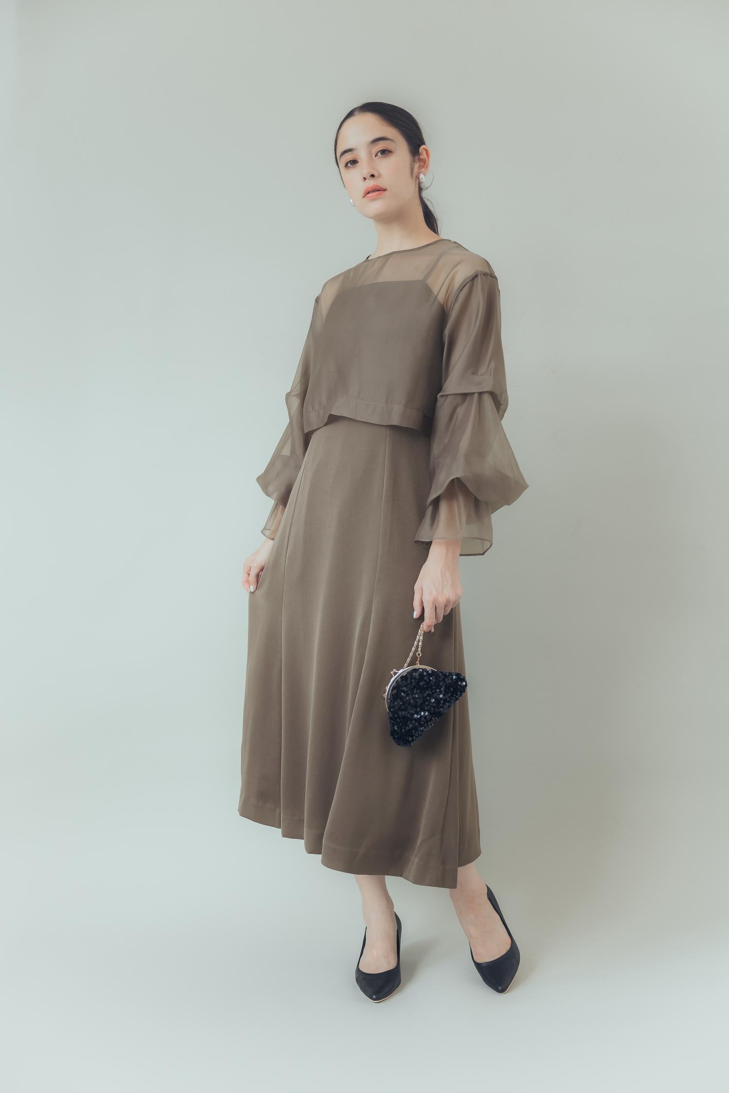 シアーブラウスのレイヤードが大人顔なセットドレス。