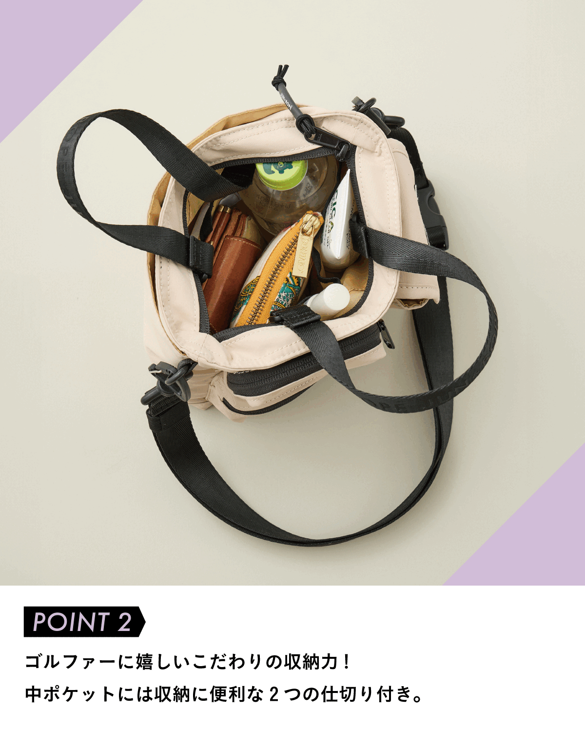 デイリーに活躍するミニマルなデザインと適度な機能性を備えたバックで定評のあるOUTDOOR PRODUCTSのアイデンティティを⽣かし、リアルゴルファーの「欲しい!」を詰め込んだ、こだわりの機能とデザインを兼ね備えた3WAYサコッシュが完成しました。ゴルフのラウンド中や日常のアウトドアシーンで活躍する万能アイテムです。