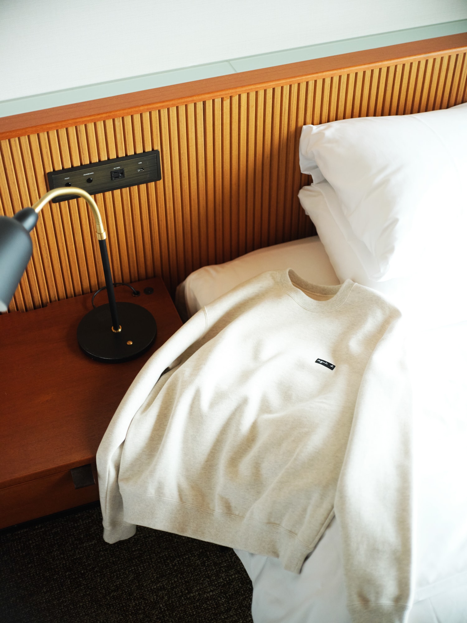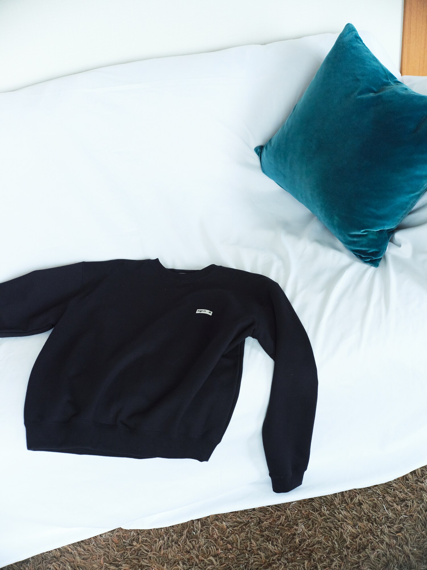 左胸に配したagnès b.のロゴが刺繍されたワッペンは