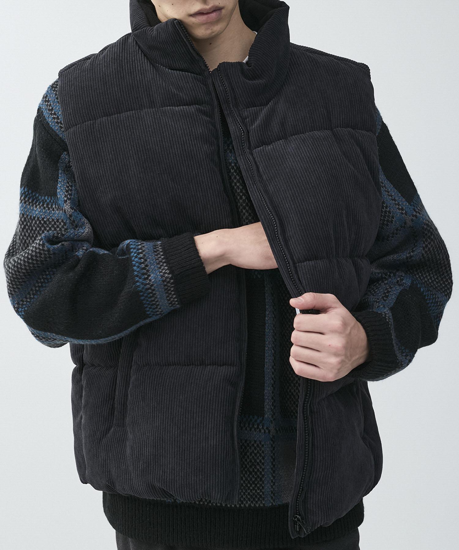 どんなスタイリングにもマッチする!スタンドカラーのベーシックな、コーディロイ中綿ブルゾン。