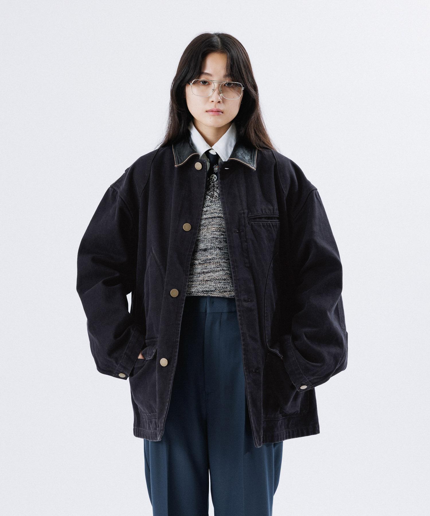 ハンティングジャケットらしいのポケット周りのデザイン性や、アクションプリーツ、レザーを加工して作った襟、力強いディテールを盛り込みました。