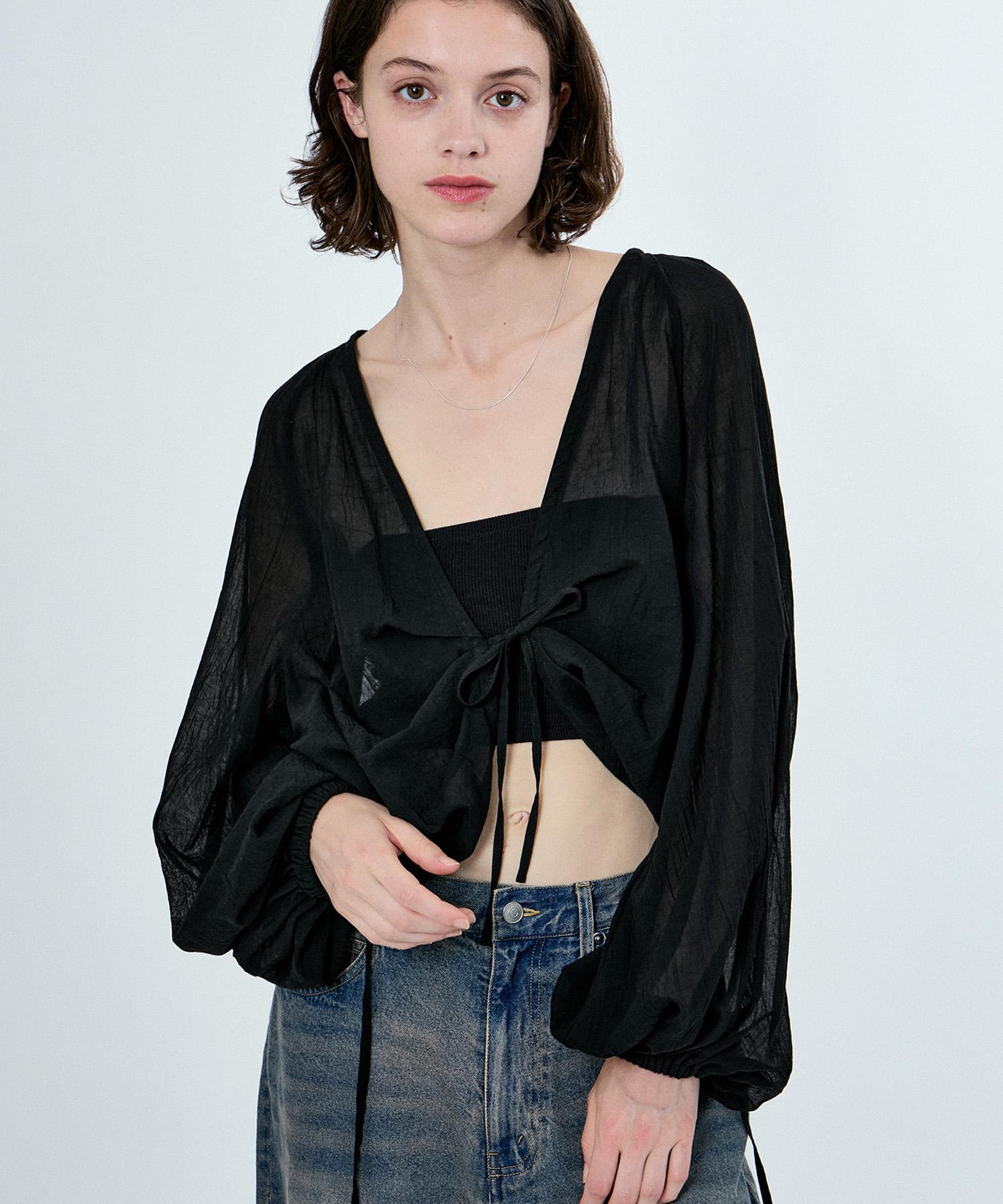 さらっとしたボイル生地で、タックやギャザーを使いふんわりと仕上げたボレロ
