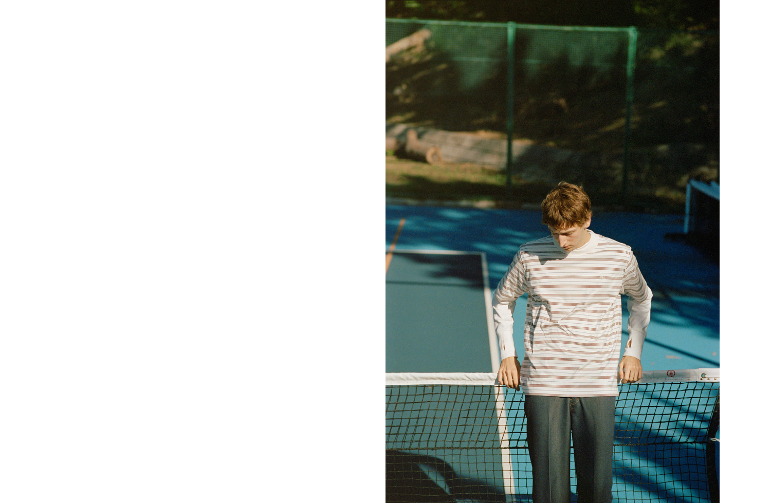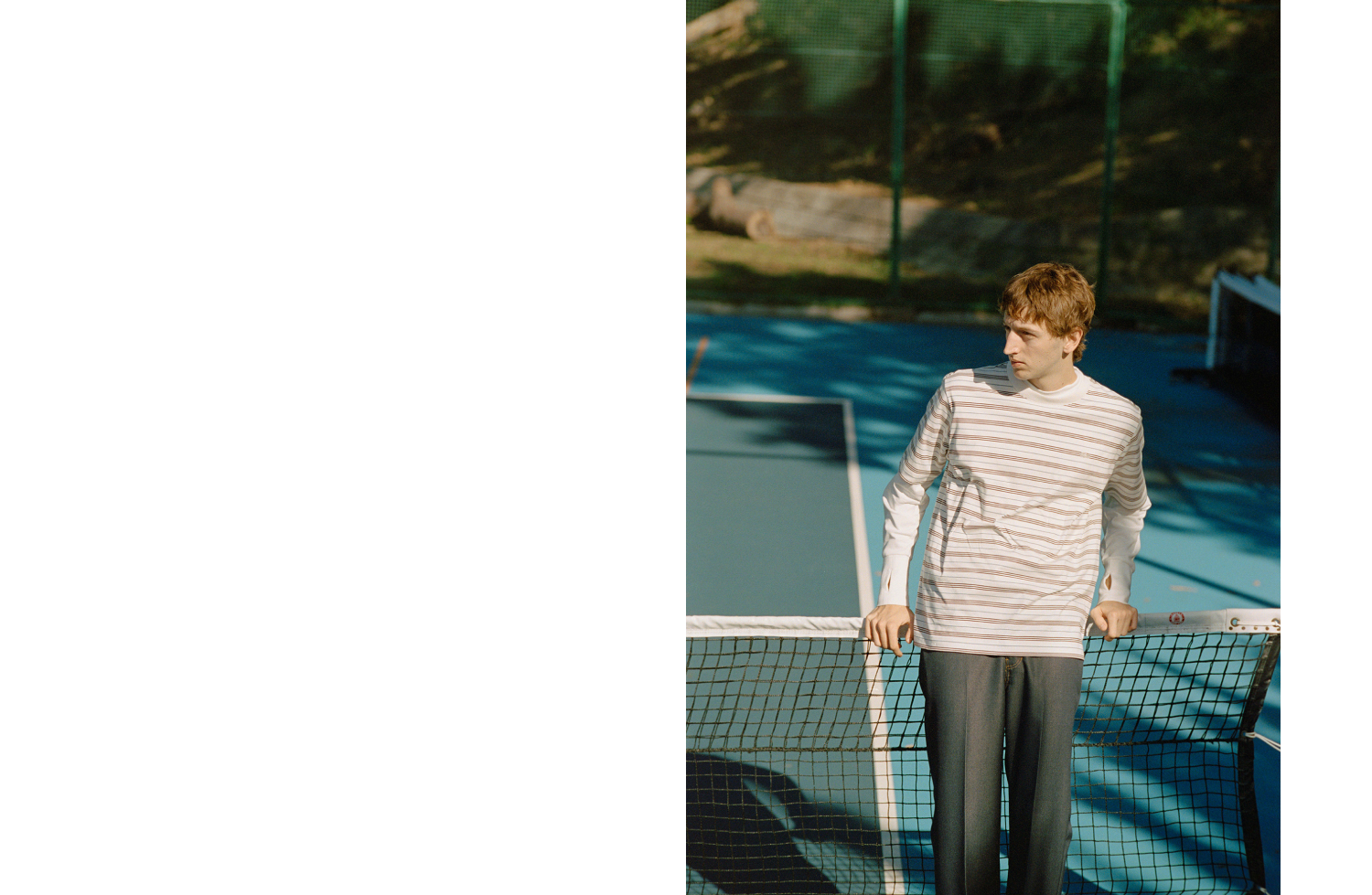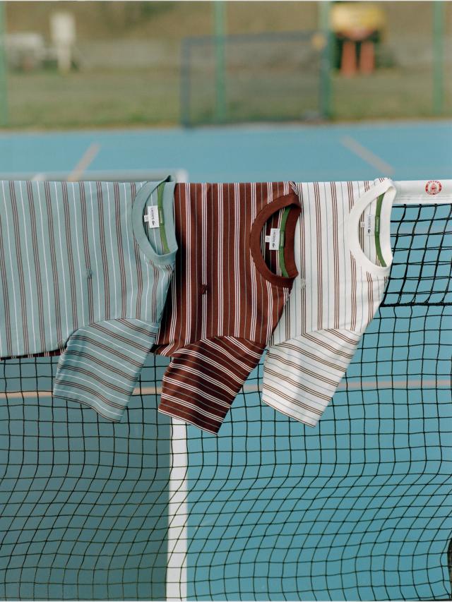 HOMMEでは、春夏に欠かせないTシャツを制作。FEMMEと同じくADAM ET ROPÉだけの配色でデザインしたボーダー柄で、春らしいエクリュと涼しげなサックス、シックなボルドーの3色展開です。