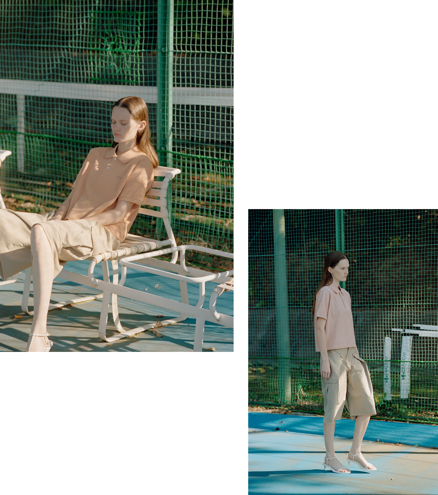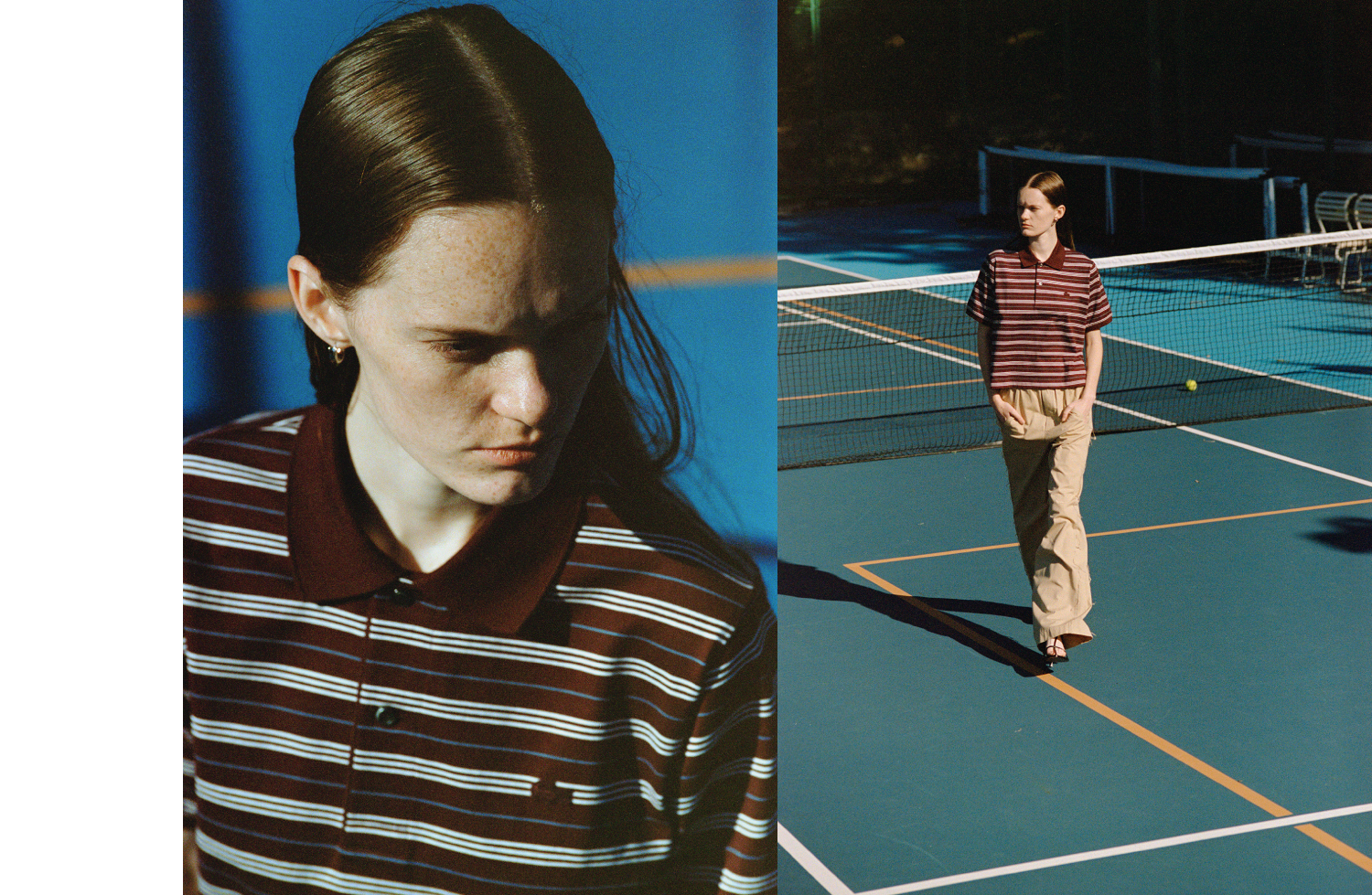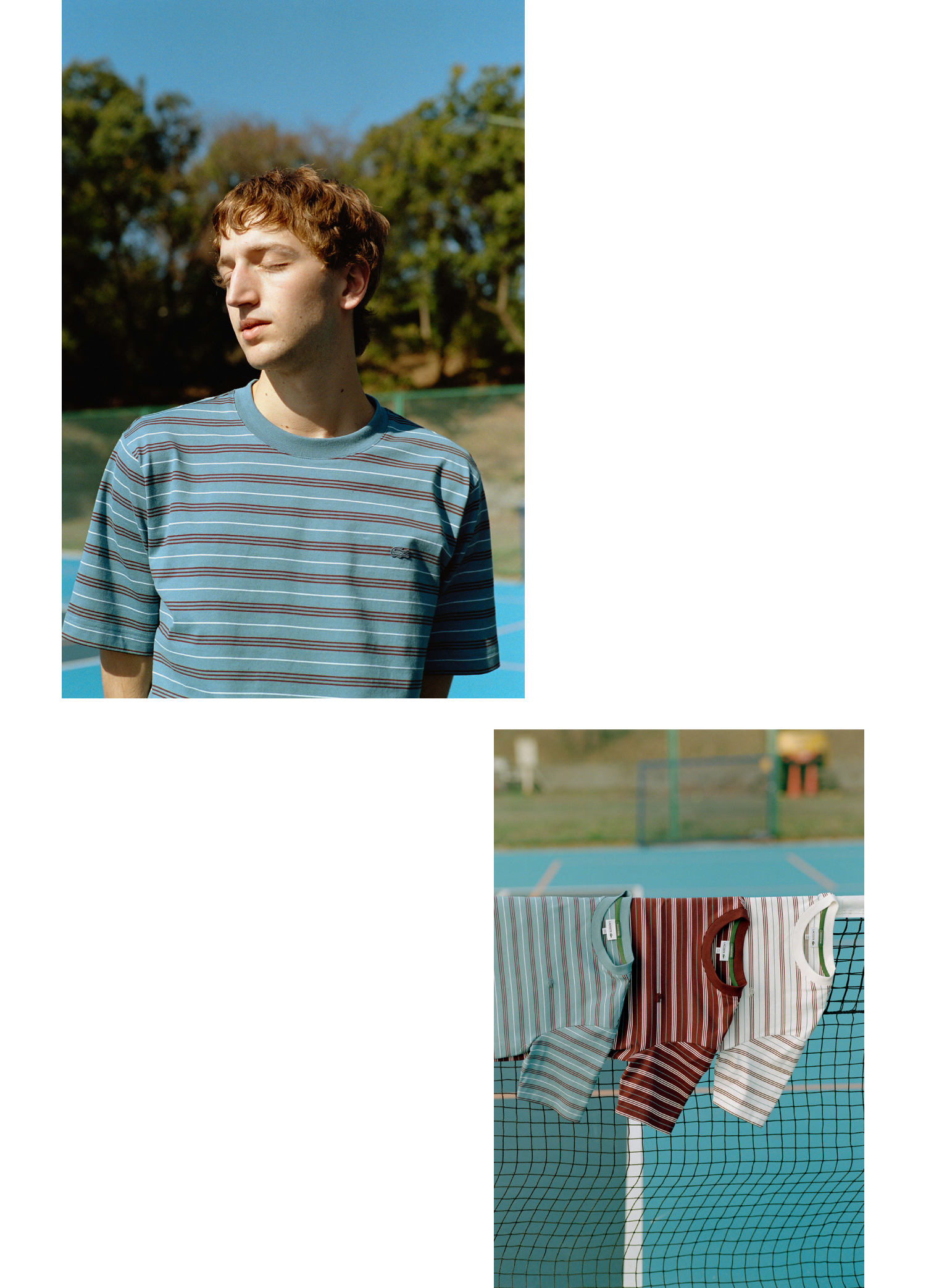FEMMEでは、ブランドの代名詞であるポロシャツをメンズのサイジングからオリジナルパターンで制作し、ADAM ET ROPÉだけの配色で彩られたボーダー柄とラコステ社のシーズンカラーからセレクトした無地の2型ご用意いたしました。