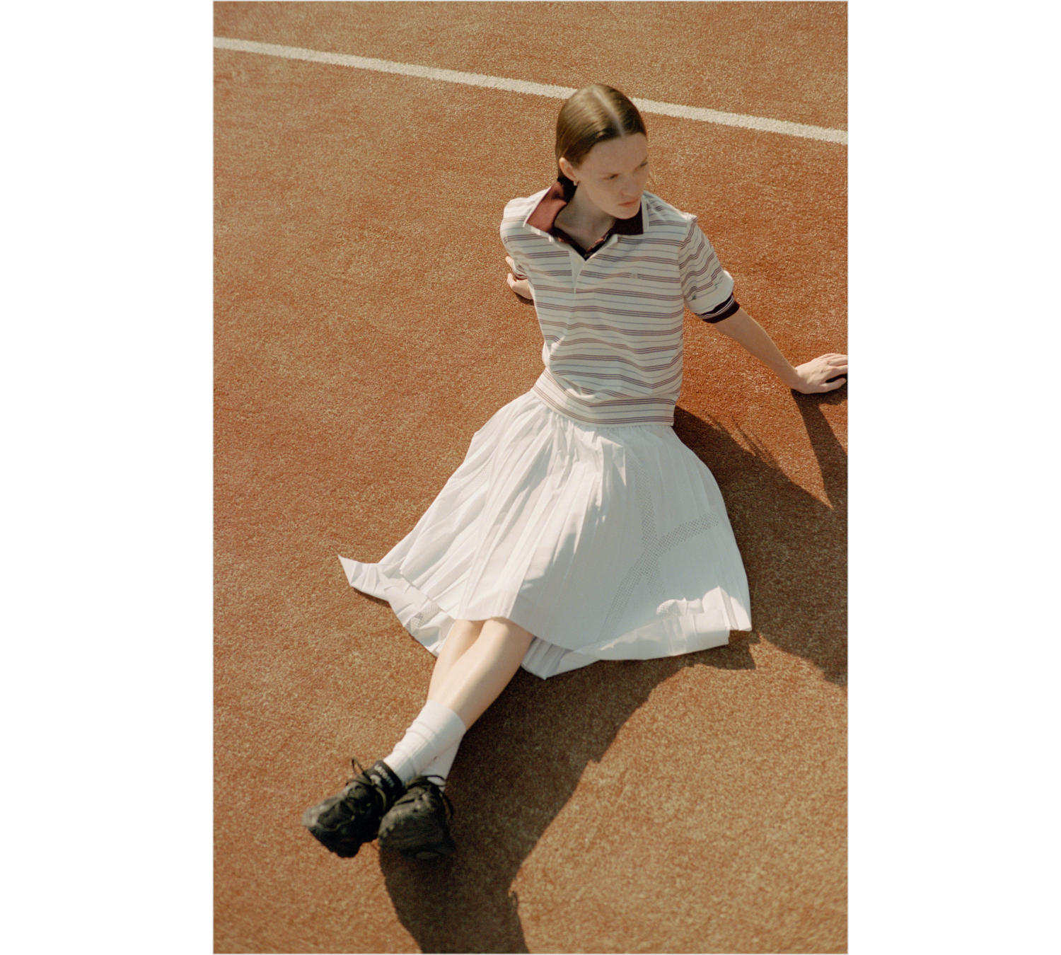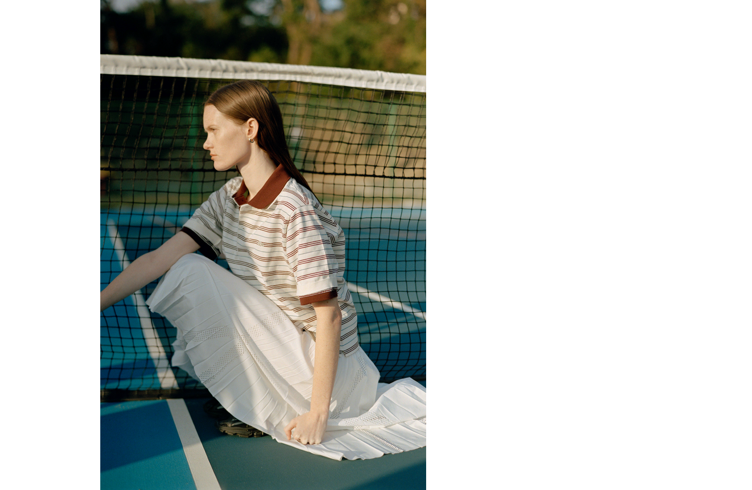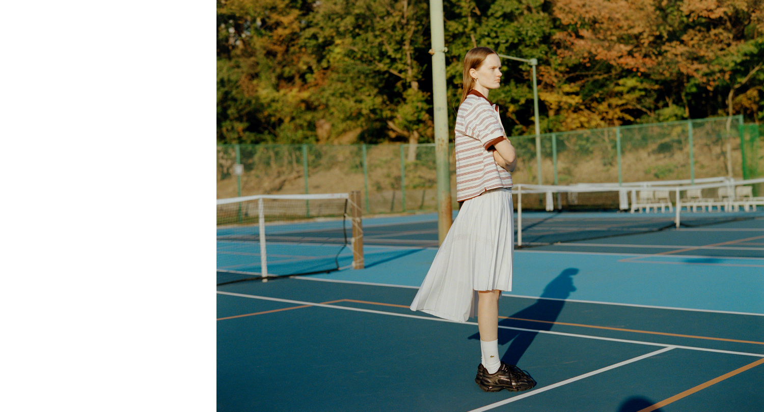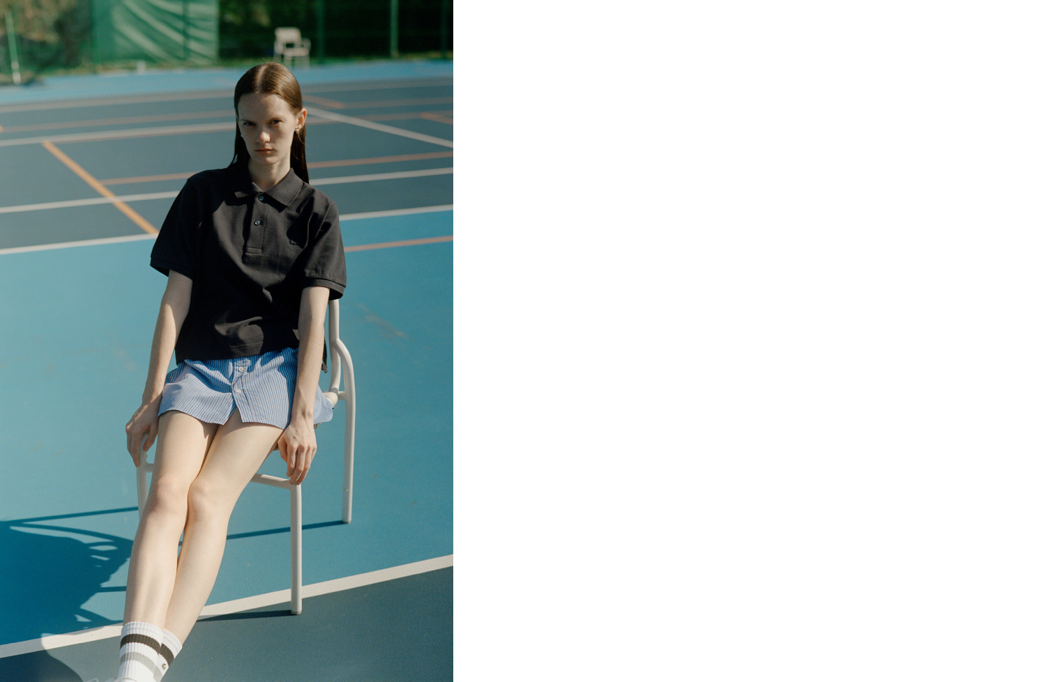 FEMMEでは、ブランドの代名詞であるポロシャツをメンズのサイジングからオリジナルパターンで制作し、ADAM ET ROPÉだけの配色で彩られたボーダー柄とラコステ社のシーズンカラーからセレクトした無地の2型ご用意いたしました。
