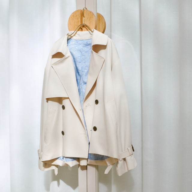 本コラボレーションのオリジナルパターン生地で仕上げた