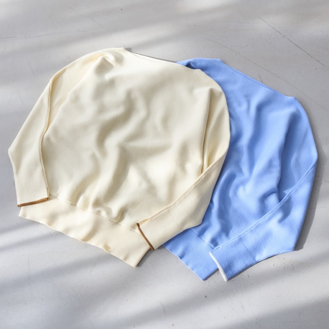 ドルマンスリーブのニットは袖口の配色がポイント。
