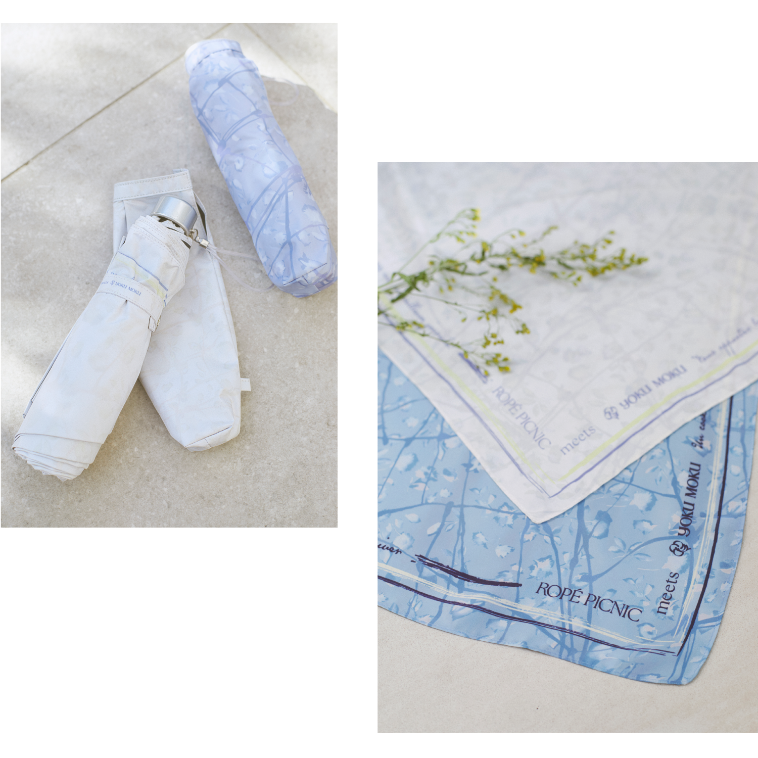 晴雨兼用の折りたたみ傘もオリジナル柄で展開。