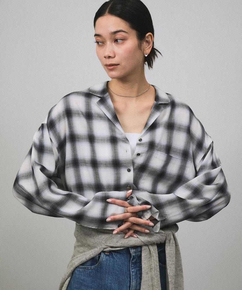 オンブレチェッククロップドオープンカラーシャツ