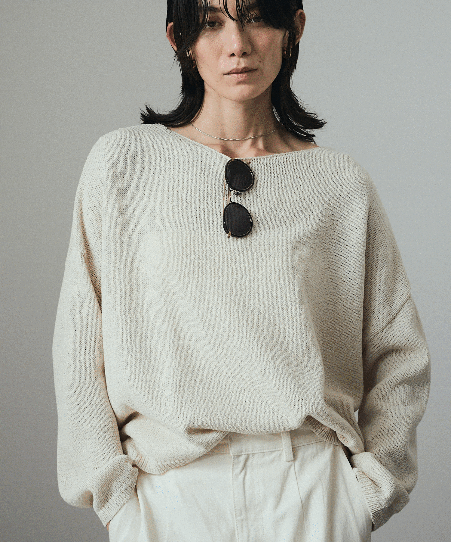ざっくりとした編地と程よいゆとりのあるサイジングがスタイリングに抜け感をプラスしてくれる1枚。