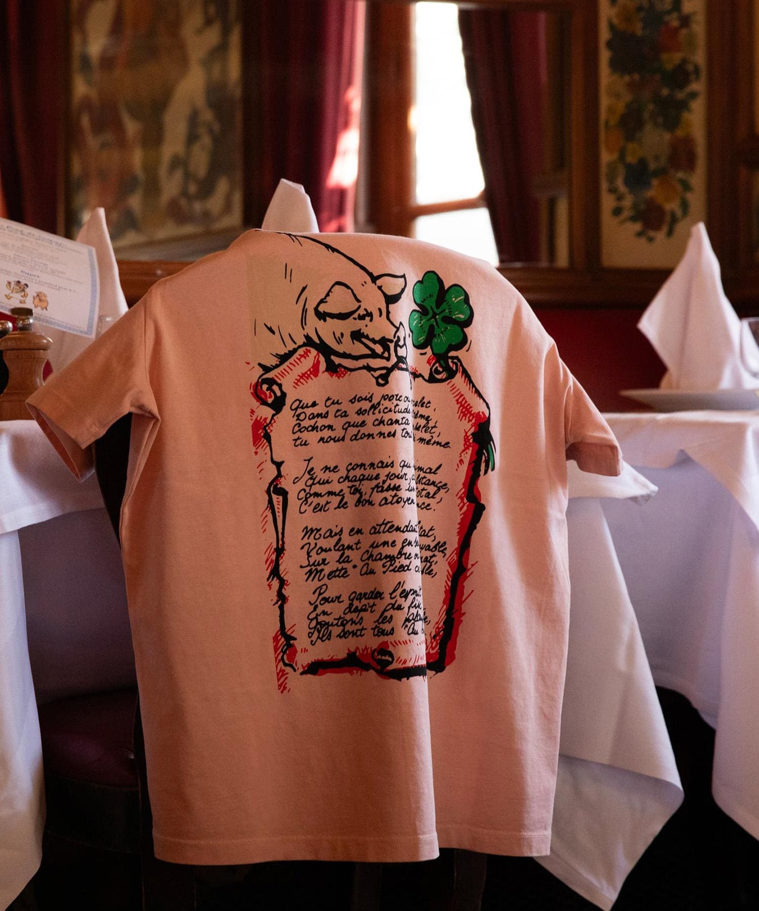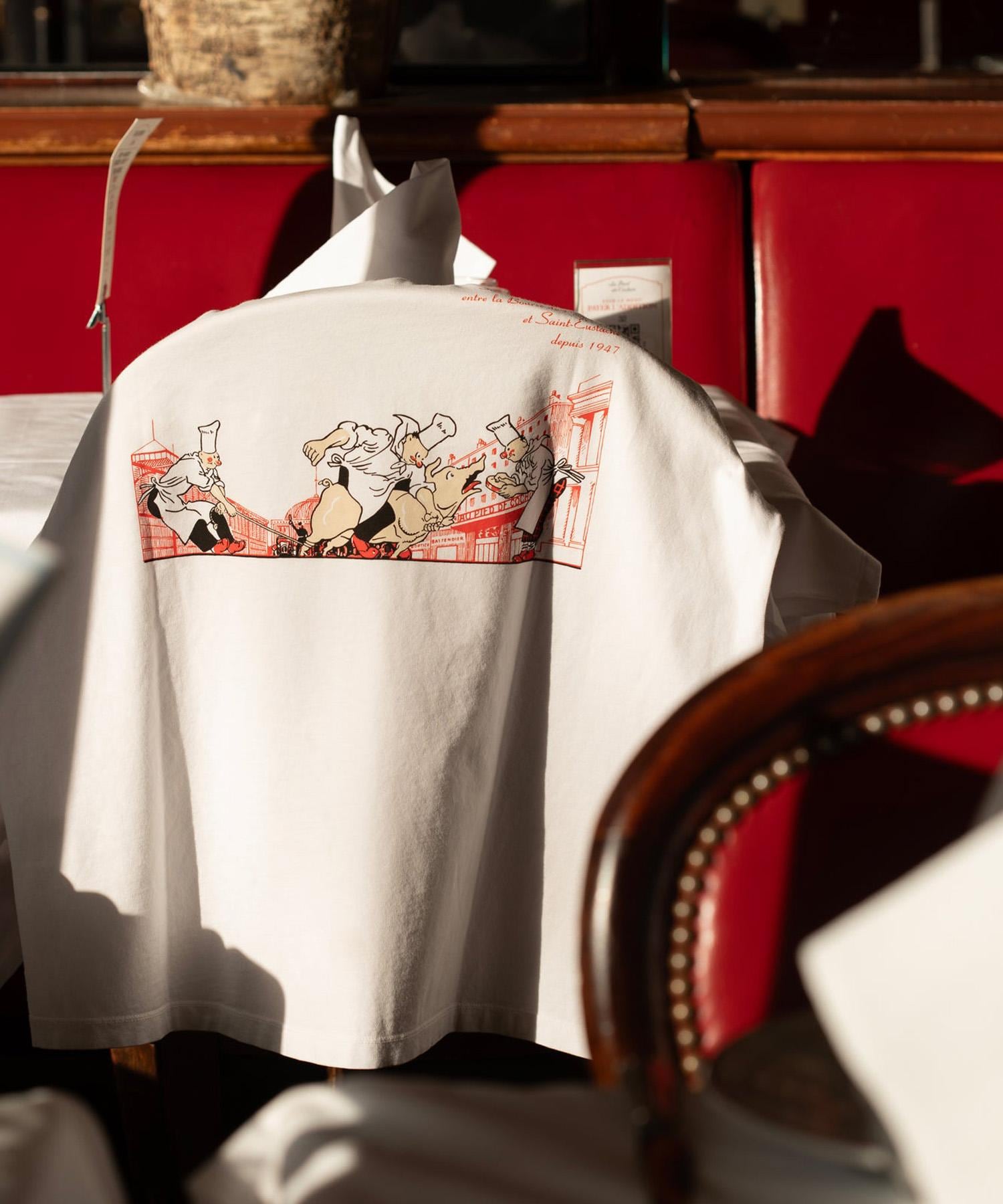 今コレクションは2000年創業ながらステーキフリットやアンドゥイエットなどクラシカルなビストロの教科書のようなメニューが魅力のBistrot Paul Bert(ビストロ・ポール・ベール)、フランスとフィリピンの融合料理の味をパリに持ち込んだDouble Dragon(ダブル・ドラゴン)、1880年にサンジェルマン・デ・プレ地区の中心部に設立された伝統的ブラスリー料理が持ち味のBrasserie LIPP(ブラスリー・リップ)、1947年オープン時に初めて夜間営業を始め、ルーブル美術館やカノペ・デ・アールにほど近いAu Pied de Cochon(オー・ピエ・ドゥ・コション)、400種類以上の自然派ワインを取り揃えた素晴らしいワインリストで有名なLe Verre Volé(ル・ヴェール・ヴォレ)らのTシャツ、スウェット、キャップをセレクション。