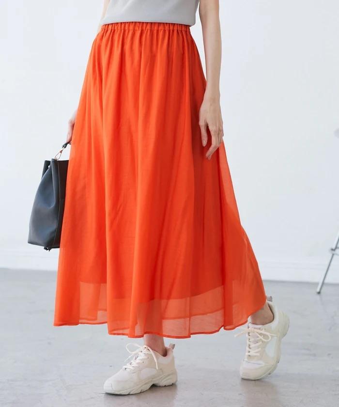 上品な光沢感のあるしなかやな素材のボリュームロングスカート。