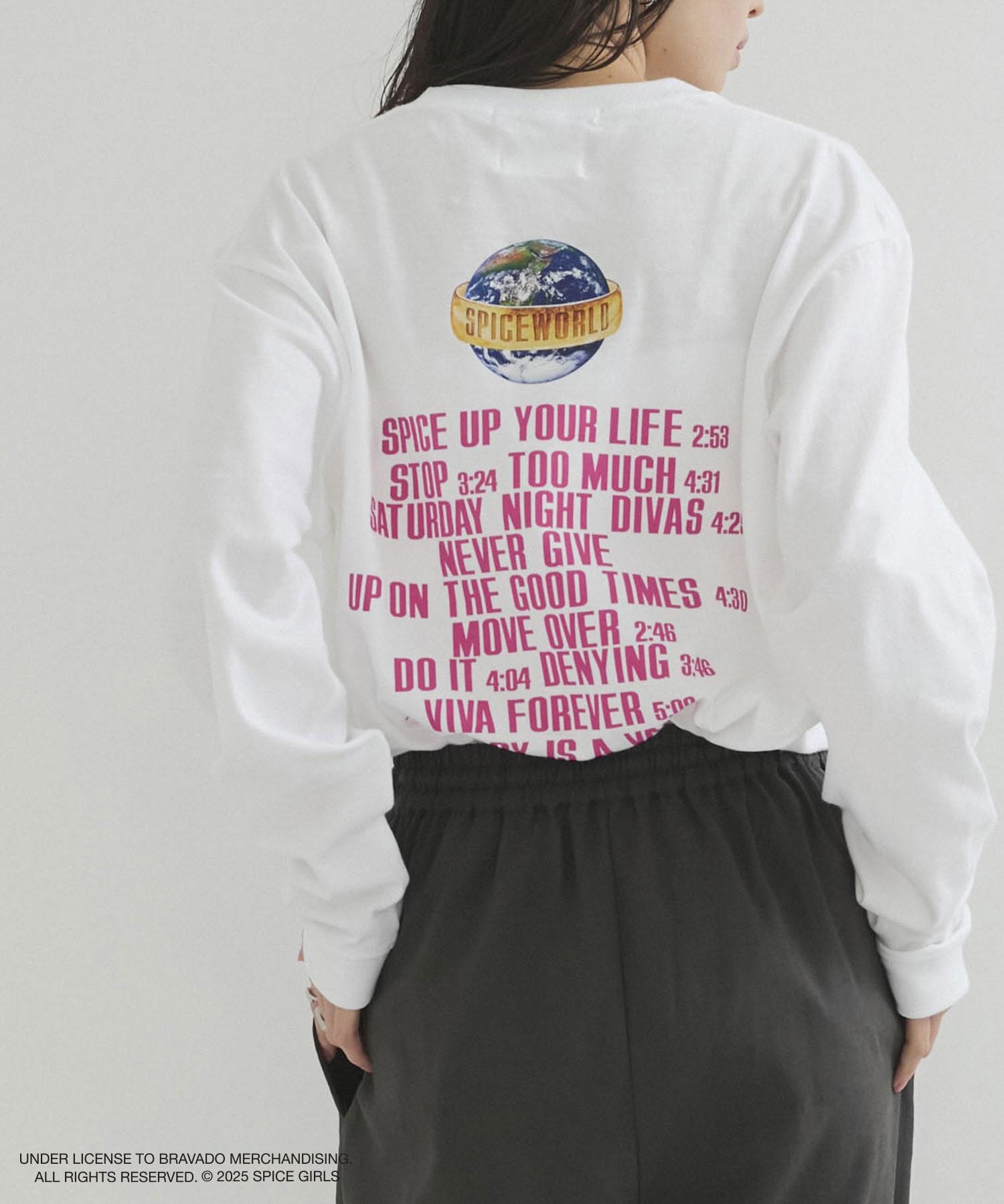 左胸には1997年に発売された2ndアルバム「SPICE WORLD」のロゴとメンバーのシルエットをデザイン