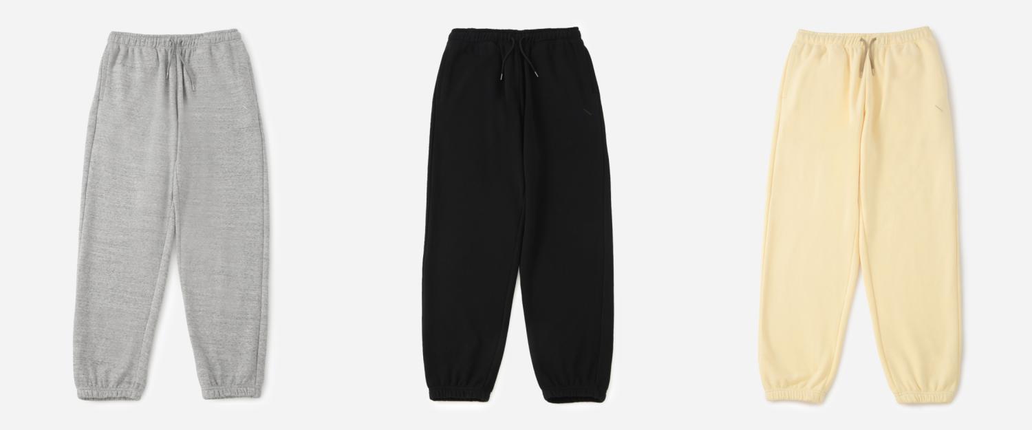 リラックスしたシルエットのリブ付きスウェットパンツです。 フロントポケット付近のスラッシュロゴがさり気なく、スタイリングの外しにも使いやすいアイテムです。