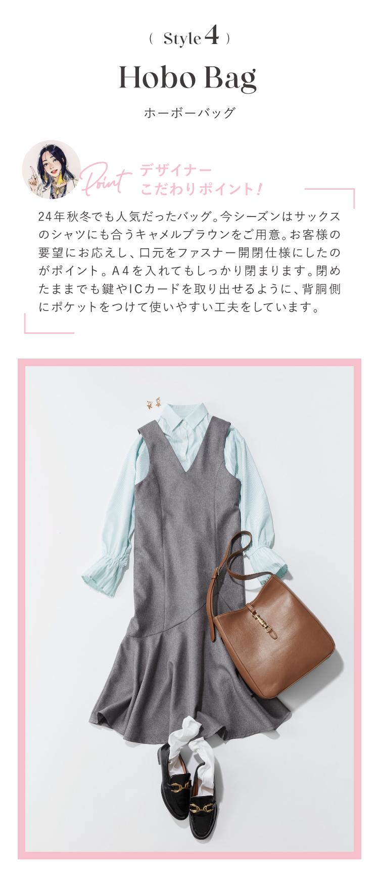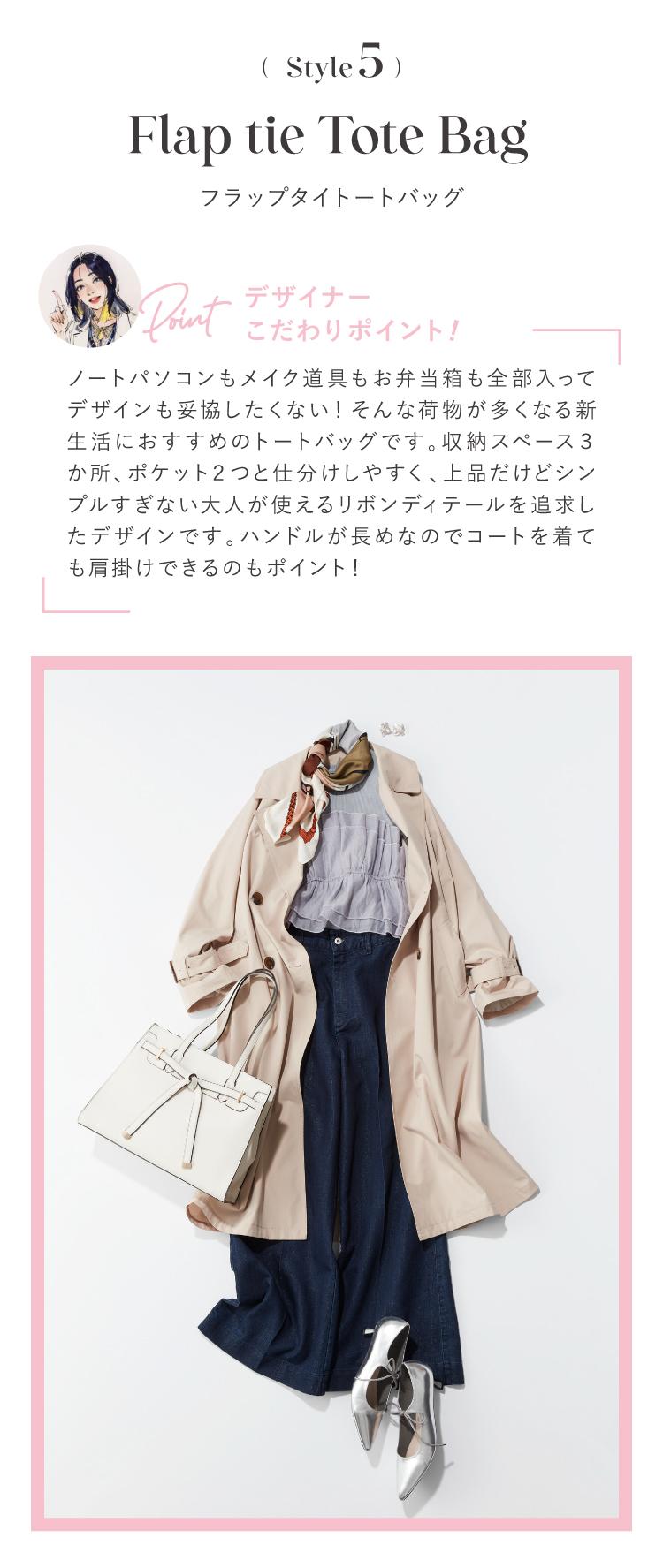 さらにバッグを使ったこの春におすすめしたい通勤シーンごとの着こなしをご提案します。