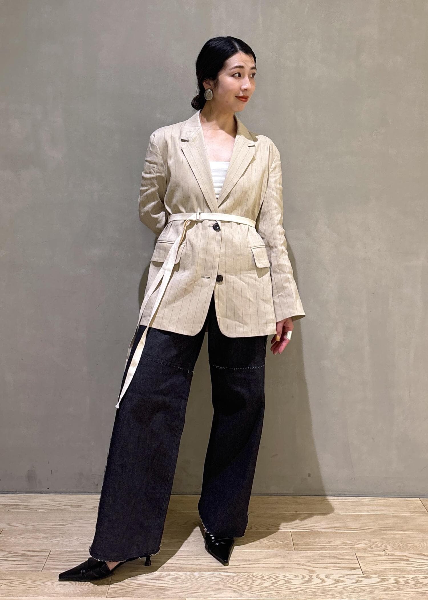動きやすさとスタイリッシュさを兼ね備えるパンツは、大人のオフィスコーデにぴったりなアイテム。定番のテーパードパンツはもちろん、トレンドのワイドパンツはまさにオフィスカジュアルコーデに最適です。濃紺のデニム素材やカジュアルなパンツも、ジャケットやシャツを合わせることでカジュアルすぎないモードなオフィススタイルに。