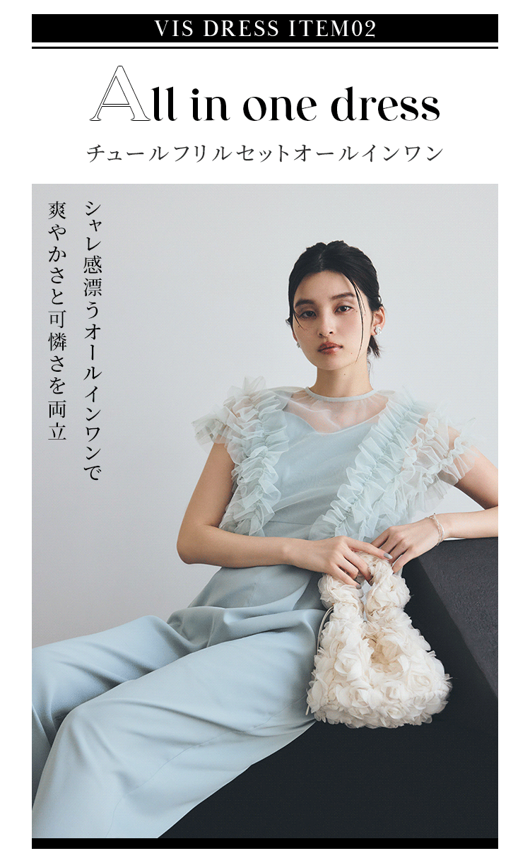 VISの好感度抜群なきれいめドレスにクローズアップ。