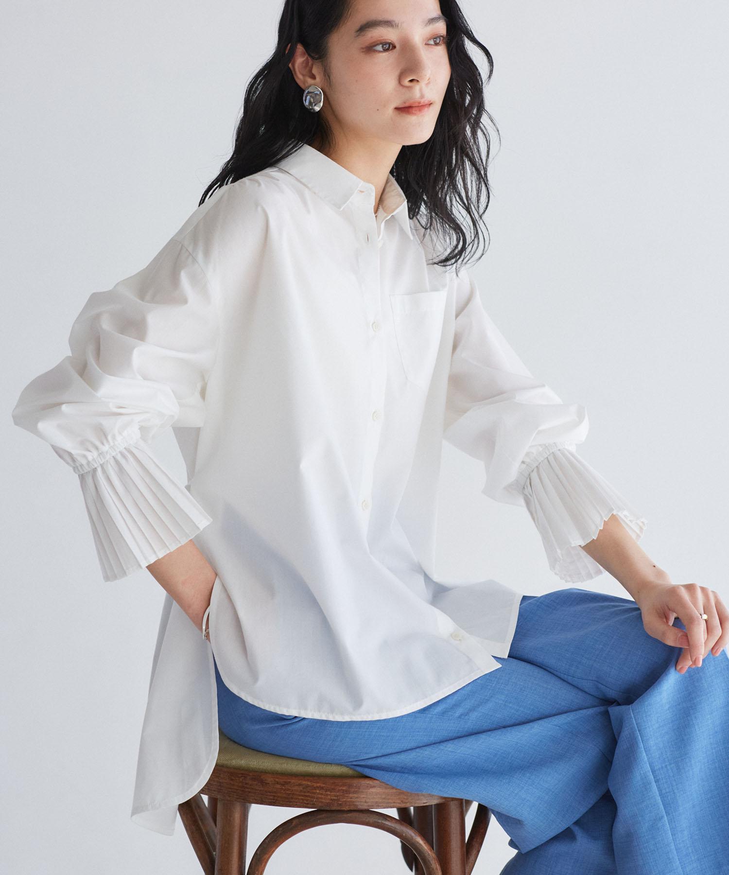 レイヤードも楽しめる袖プリーツが印象的なブラウス