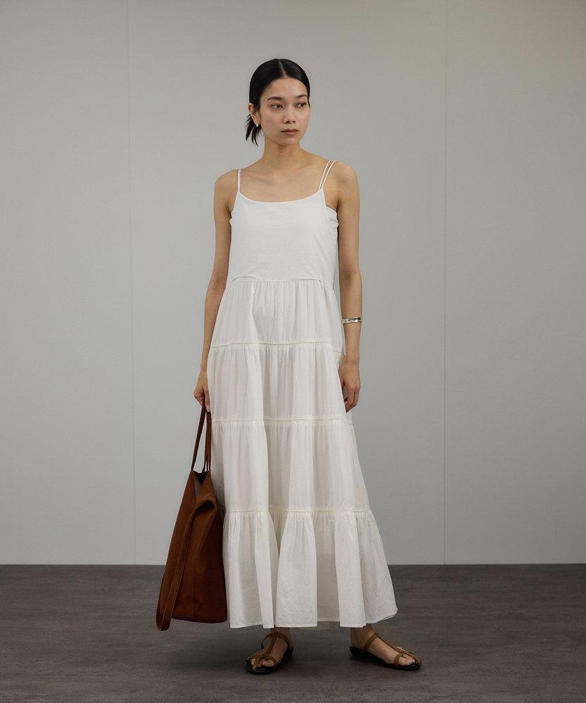 普段使いからリゾートまで活躍。コットン100%の生地をたっぷり使ったティアードキャミワンピース。