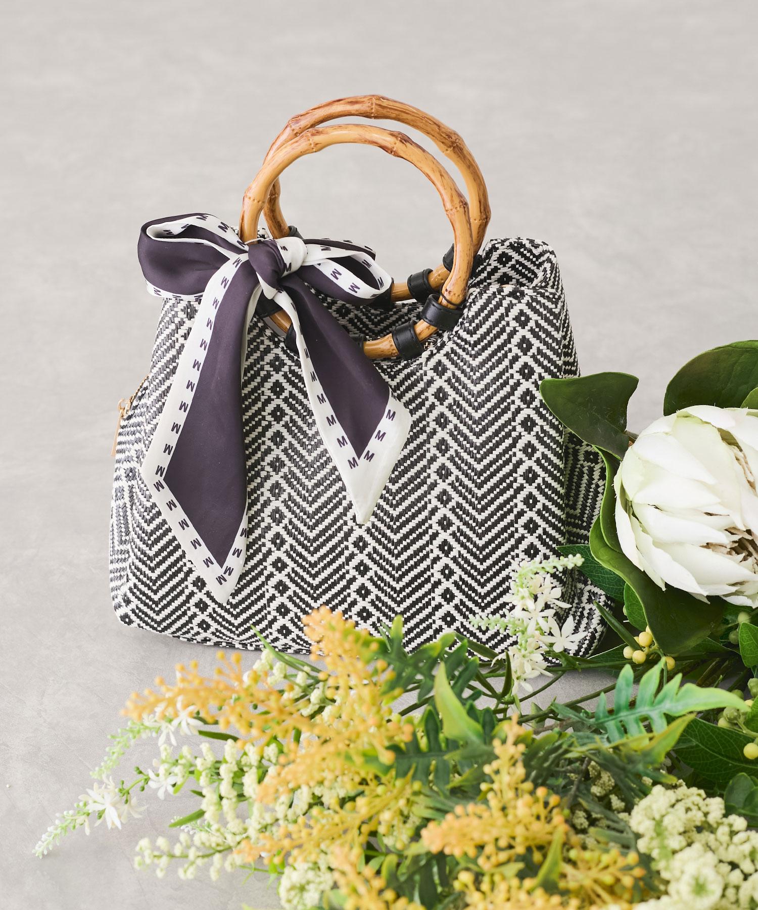 ナチュラルな竹ハンドルと付属のリボンスカーフがポイント。