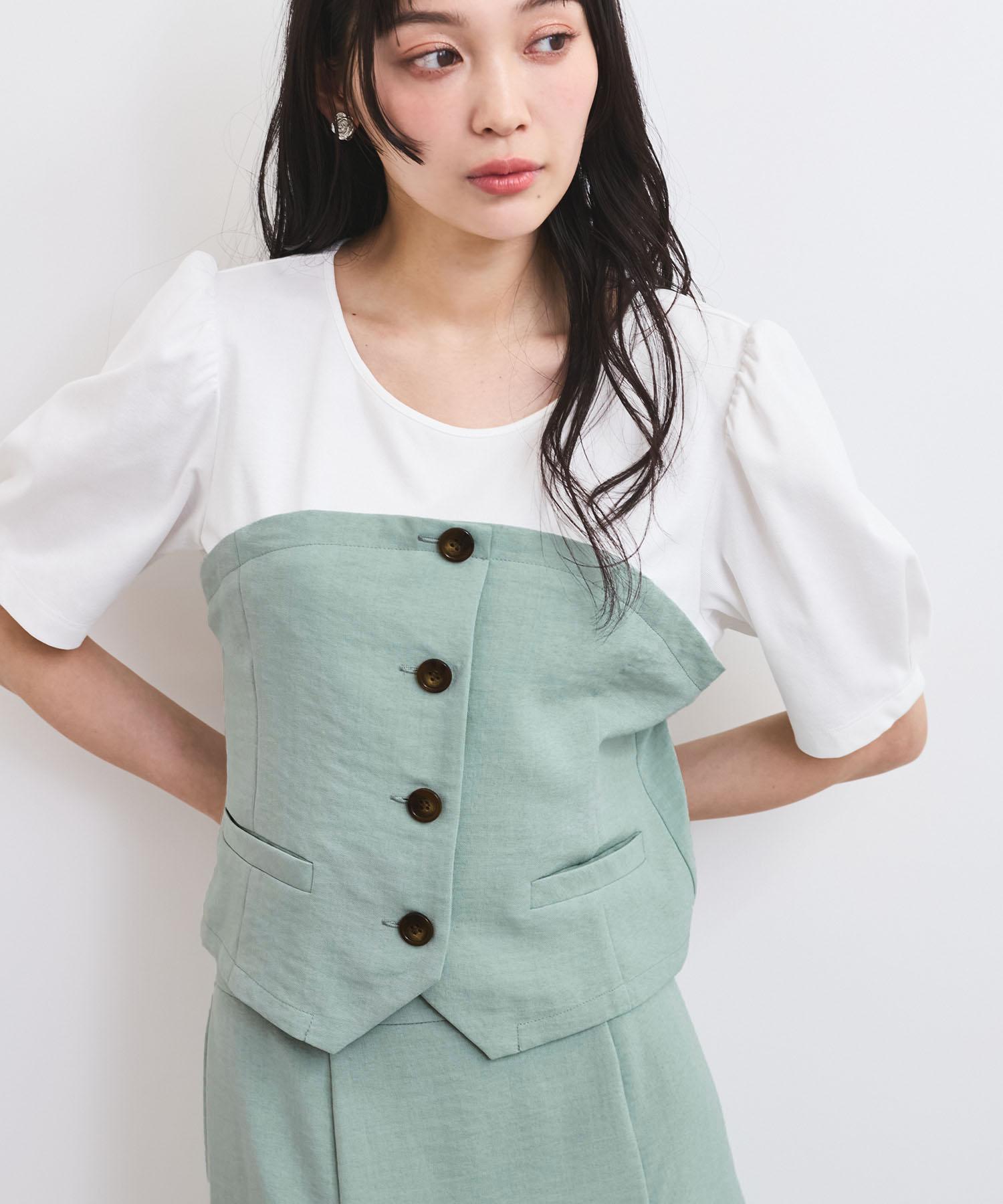 袖のパフスリーブが女らしいビスチェドッキングのプルオーバー
