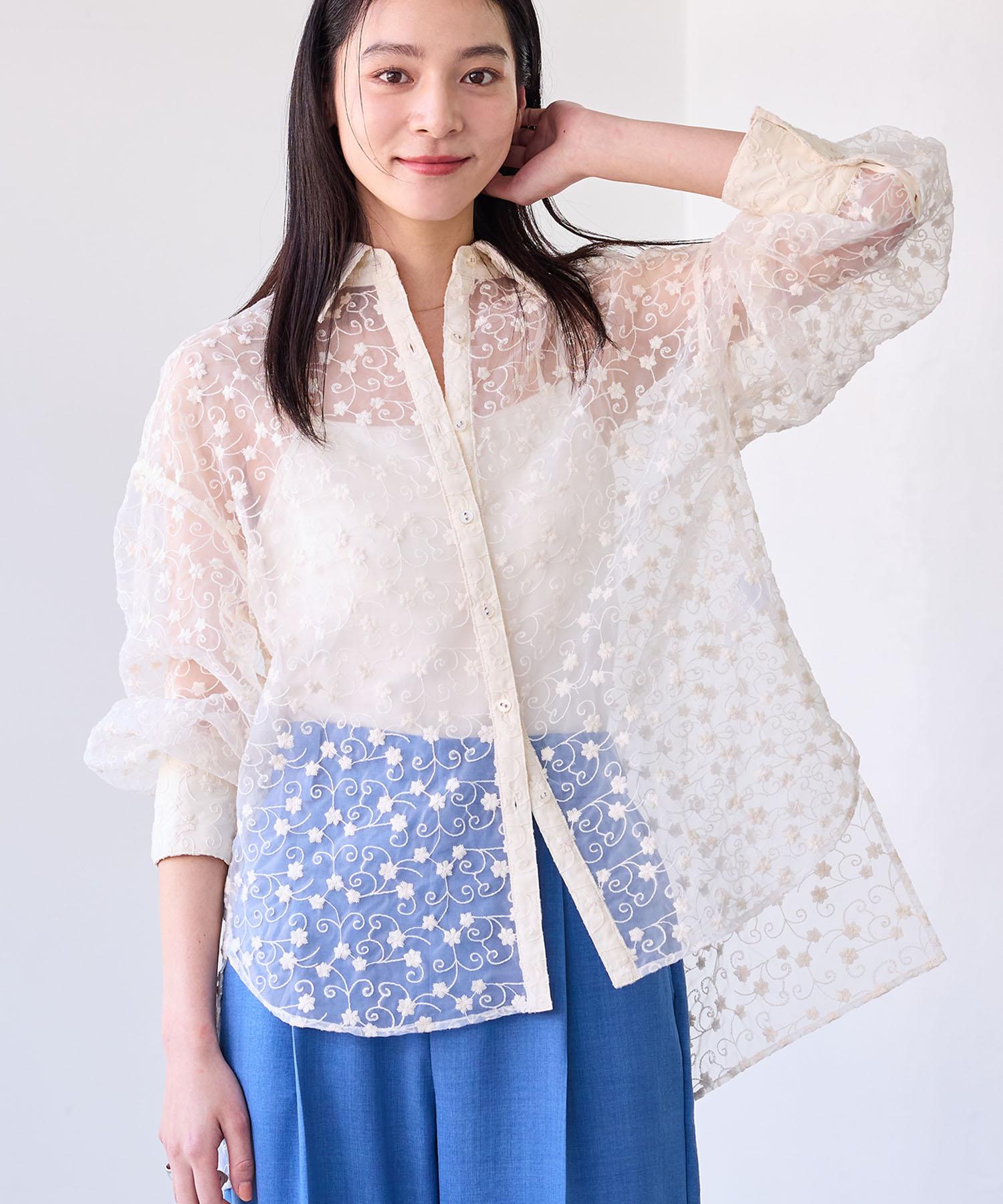 程よい透け感で女性らしさ惹き立つシアーシャツ。