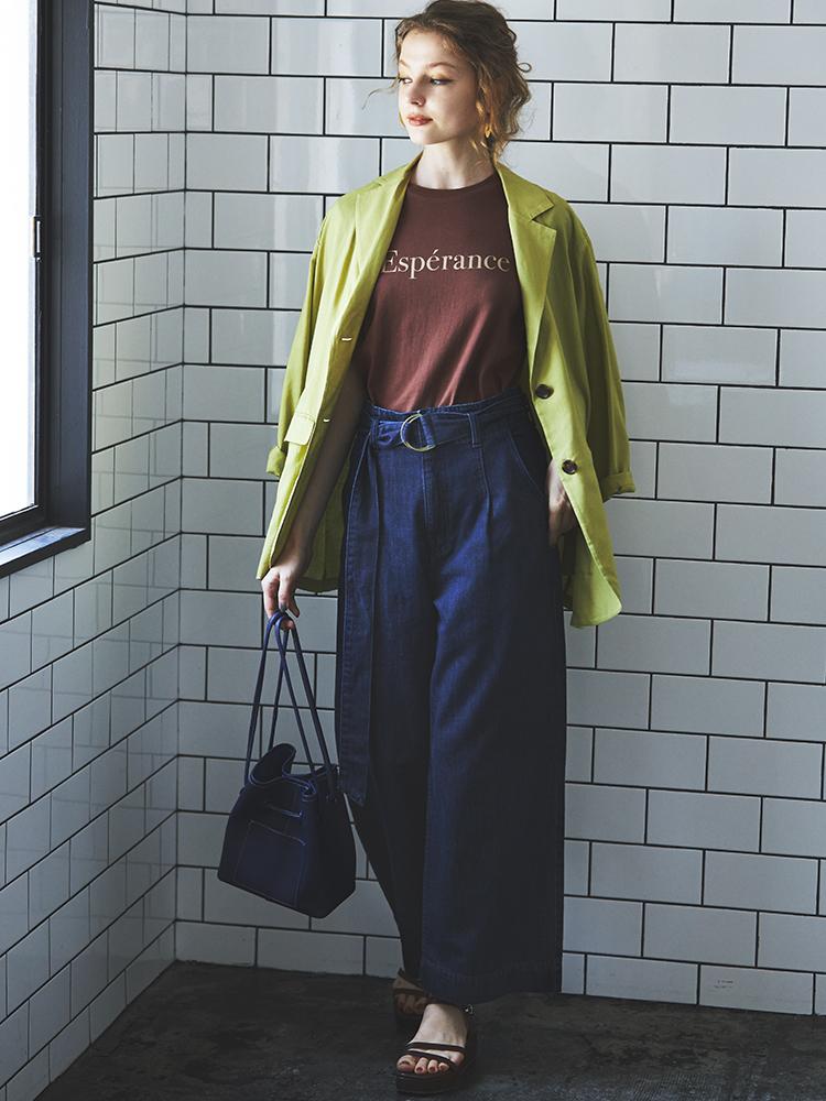 【エコテックス(R)】ハイウエストデニムワイドパンツ