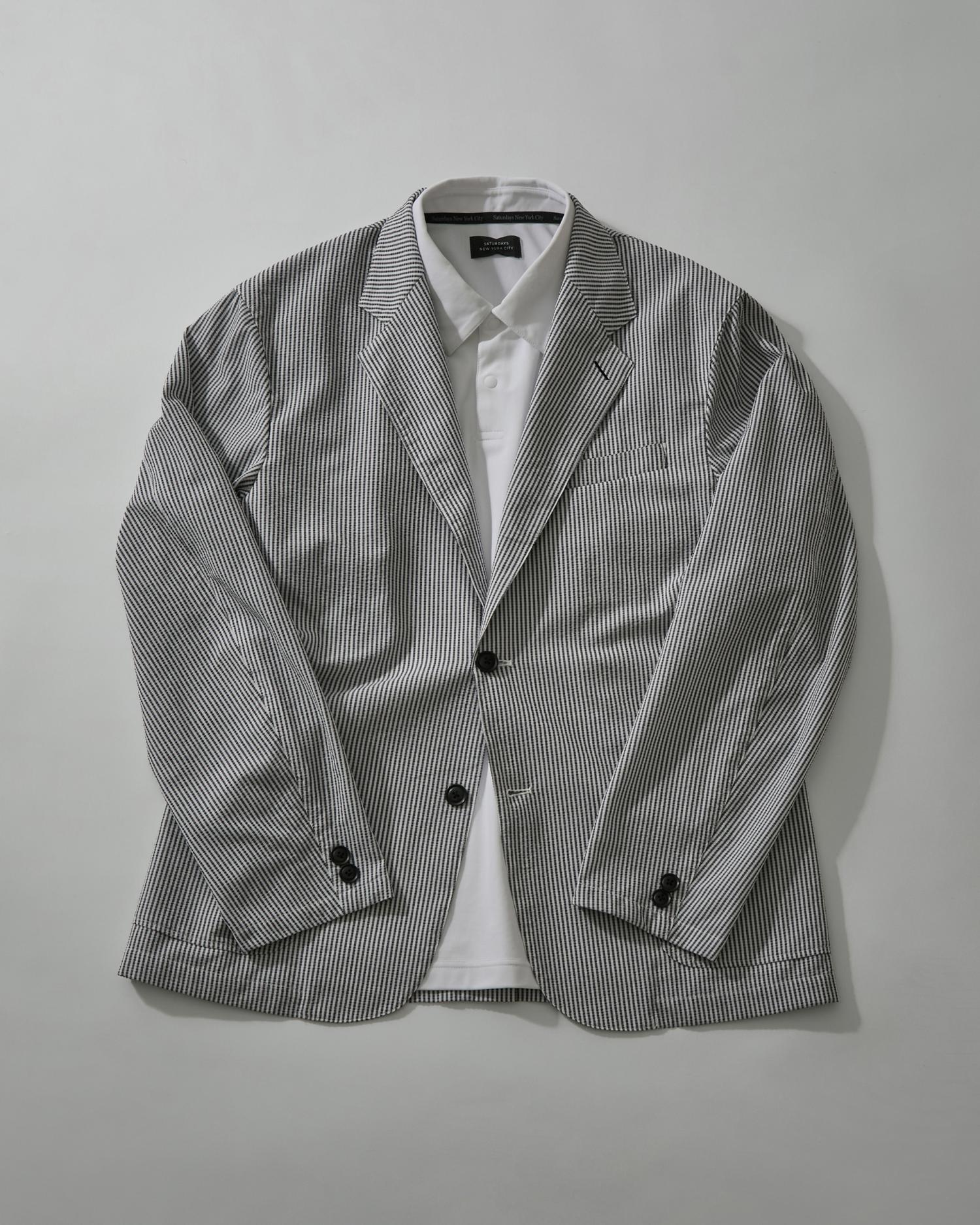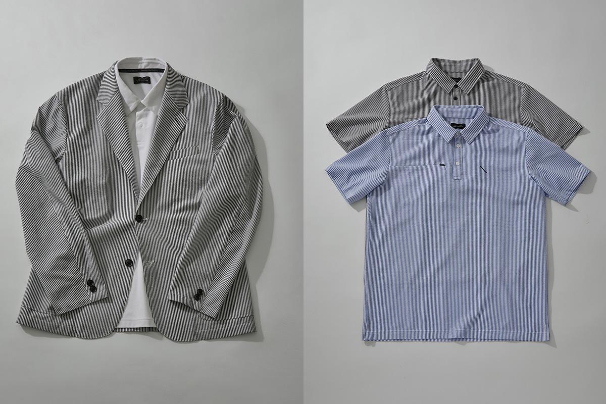 凹凸のあるサラッとした肌触りが魅力のシアサッカーは、春夏のゴルフシーンを快適にサポートします。 ラインナップは、無地とストライプ柄のPoloシャツ、ジャケット、ショーツ、パンツの全6型。