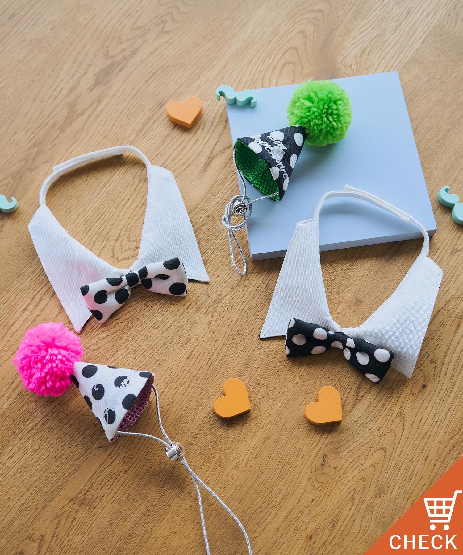 お揃いで着用できるキャップ、バースデーイベントにおすすめの帽子や蝶ネクタイセットなど全4型を展開。