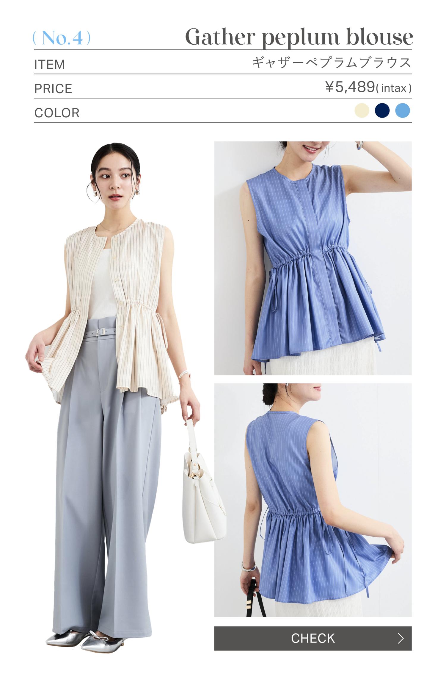 ペプラムシルエットは高めの位置から切り替わることで目線を上げ、スタイルアップ&気になるお腹や腰周りをさりげなくカバー◎。