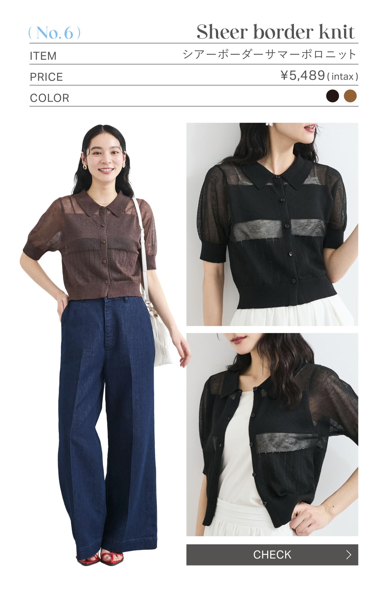コンパクトな着丈感と程よい透け感のサマーポロニット