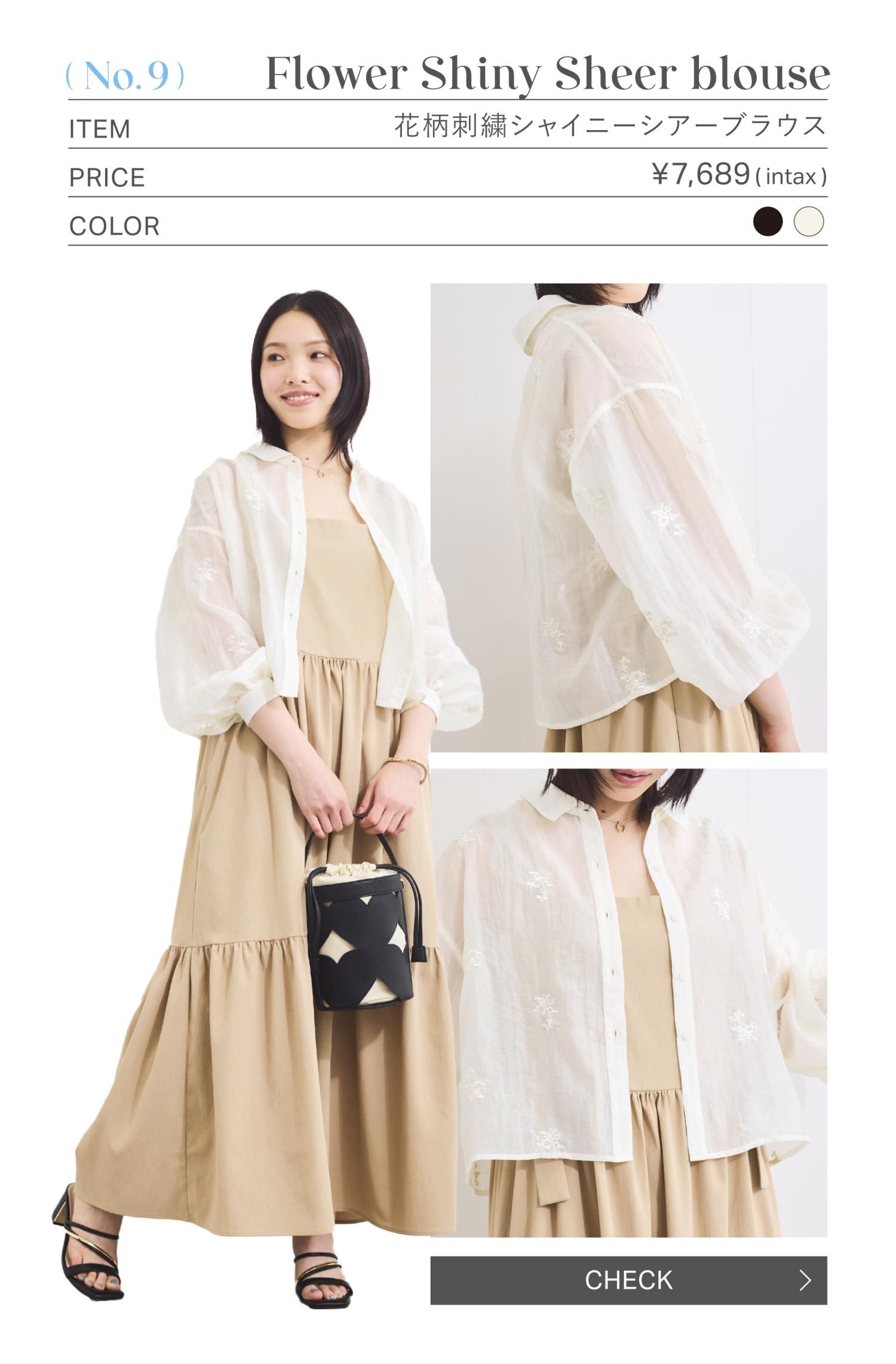 ふんわりしたパフスリーブがこなれ感と女性らしい印象を与え、程よい透け感から清涼感も演出するこれからのシーズンにぴったりな1枚。