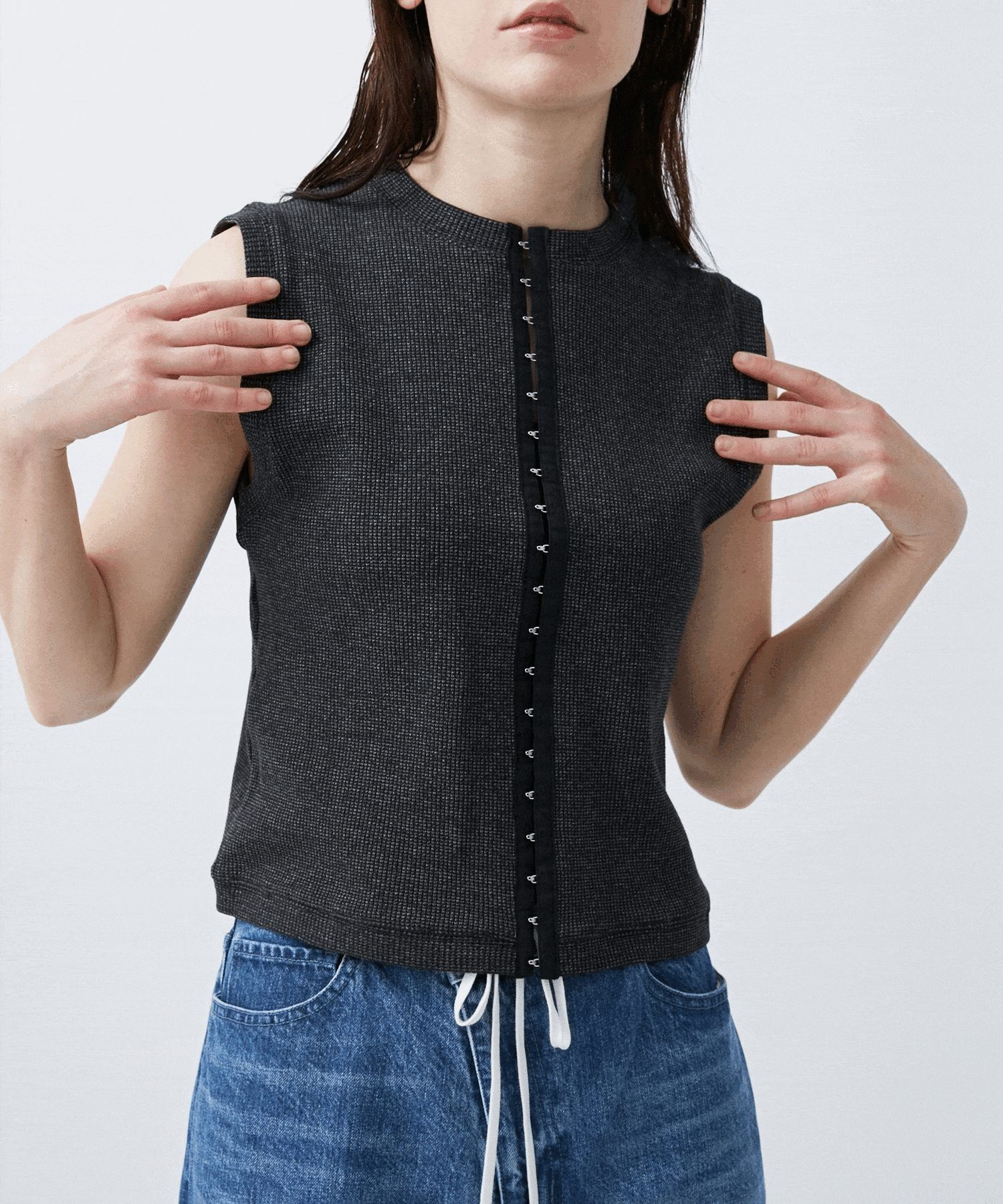 ミックス糸を使用した、他にはない表面感が特徴のサーマルタンクトップ。