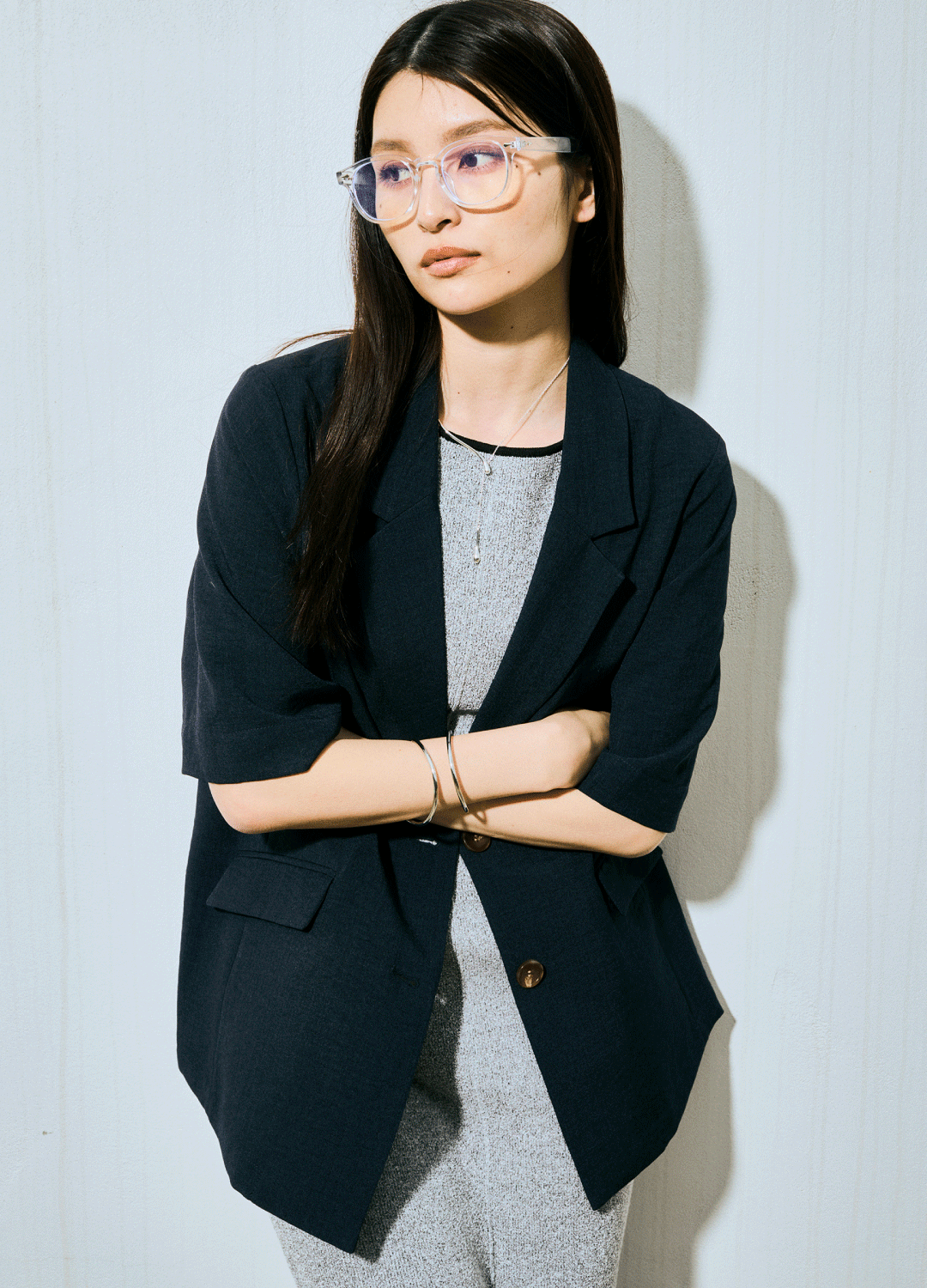 リネンライクハーフスリーブジャケット【接触冷感/洗える】