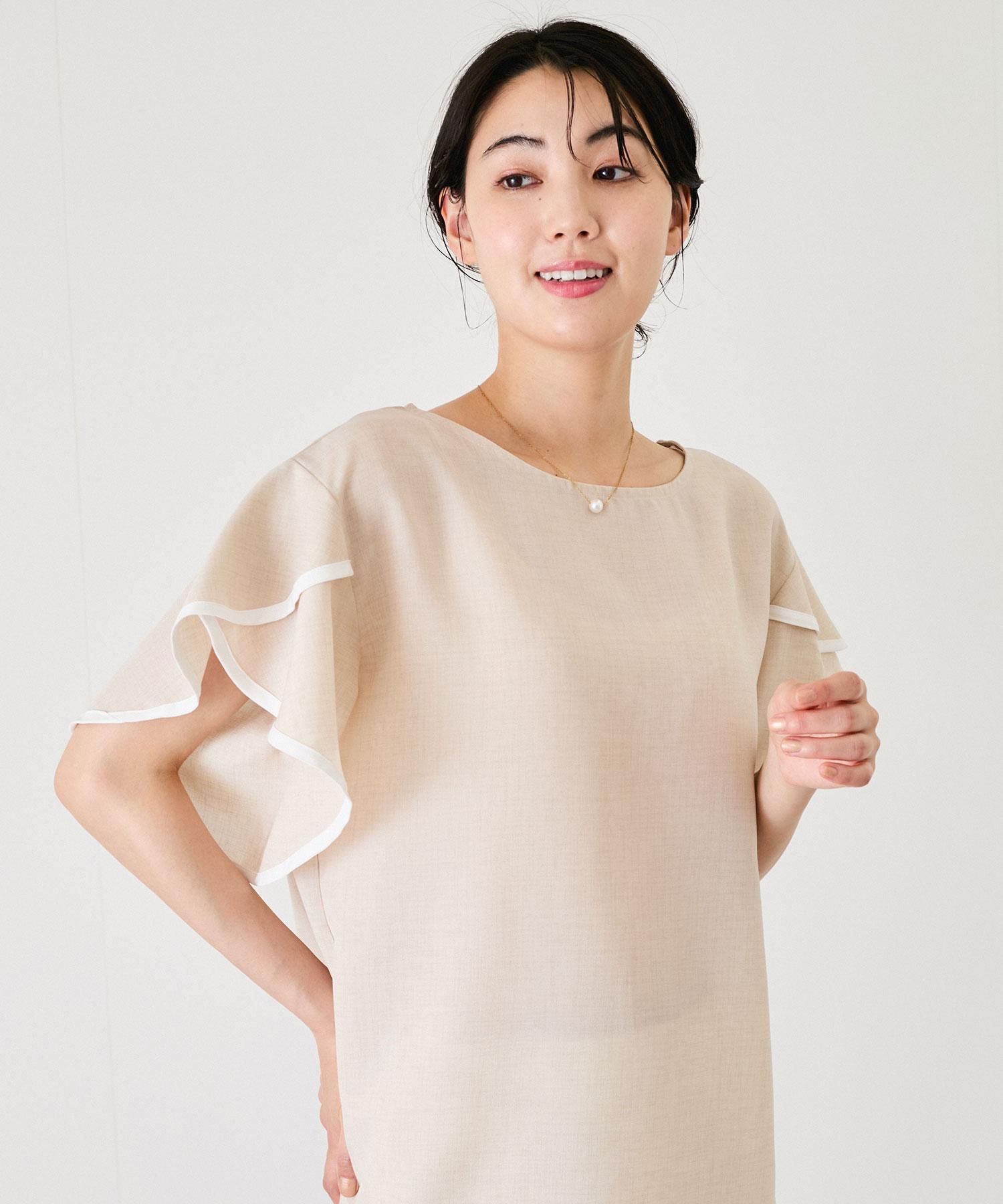 パイピングスリーブブラウス
