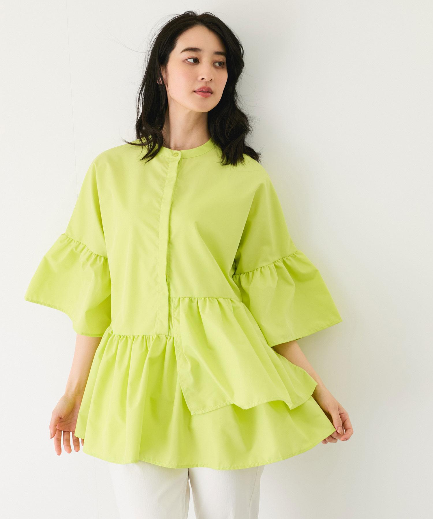 ステンカラーラッフルチュニックブラウス