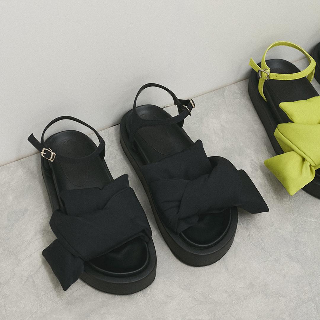 厚底ソールでスタイルアップも叶いつつトレンド感も取り入れられるボリュームサンダル。