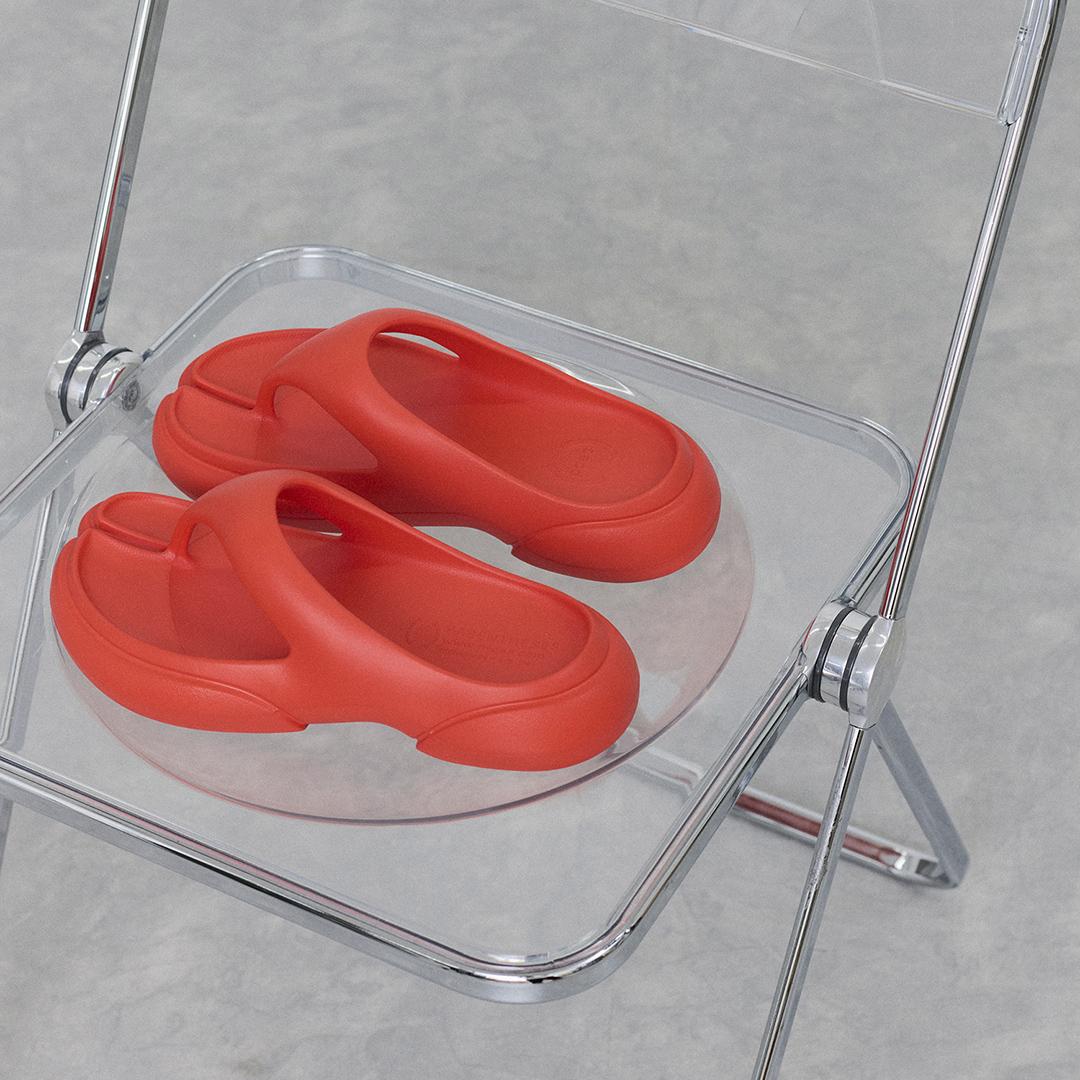 タビ風のつま先デザインが目を引く、個性派サンダル。