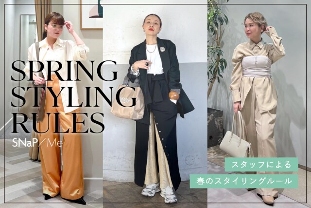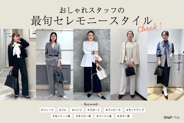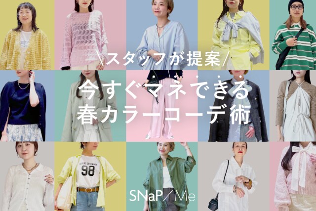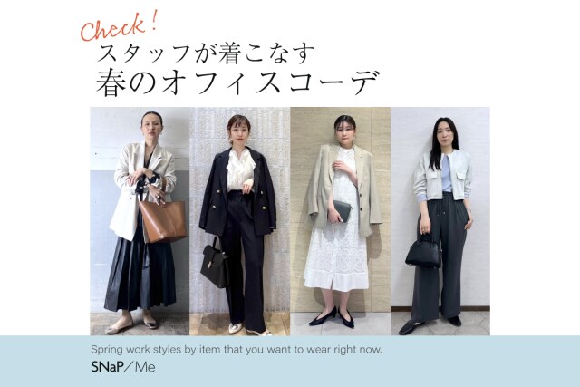 明日何着る? 夏のスタッフコーデ図鑑 スタッフの夏のコーディネートをご紹介! 「何を着よう?」「トレンドのコーデは?」 そんな悩みを解決するスタイリングをご提案します。 ぜひ、200コーデの中からお気に入りのスタイルを 見つけてみてください! INDEX □ T-Shirt / Tシャツコーデ25選 □ Shirt / シャツコーデ25選 □ One-Piece / ワンピースコーデ25選 □ Summer Jacket / 夏ジャケットコーデ25選 □ Relax Pants / リラックスパンツコーデ25選 □ Skirt / スカートコーデ25選 □ Short Pants / ショートパンツコーデ25選 □ Denim / デニムコーデ25選 T-SHIRT Tシャツ Tシャツコーデを見る Tシャツを見る SHIRT シャツ シャツコーデを見る シャツを見る ONE-PIECE ワンピース ワンピースコーデを見る ワンピースを見る SUMMER JACKET 夏ジャケット 夏ジャケットコーデを見る 夏ジャケットを見る RELAX PANTS リラックスパンツ リラックスパンツコーデを見る パンツを見る SKIRT スカート スカートーデを見る スカートを見る SHORT PANTS ショートパンツ ショートパンツを見る DENIM デニム デニムコーデを見る デニムを見る TOPへ戻る サイトTOPへ戻る SNap Me|スタッフの春のスタイリングルール 春のスタイリングに欠かせないポイントを、人気スタッフ5名が一挙公開! それぞれの個性とアイデアを活かしたマイルールで、春をもっとおしゃれに楽しむためのヒントをお届けします! SNap Me|スタッフに学ぶ、通勤コーデ 春の到来とともに、オフィススタイルも軽やかにアップデートしませんか? 今回は、スタッフが着こなす春のオフィスコーデをご紹介します! 爽やかさときちんと感を兼ね備えたスタイリングで、毎日の通勤コーデをもっと楽しみましょう! SNap Me|スタッフに学ぶ、骨格タイプ別の着こなし術! 少しずつ暖かくなり、そろそろ春のお洋服が気になりだすところ。 今回はストレート、ウェーブ、ナチュラルの骨格別スタッフがおすすめする春のアウター&ボトムスコーディネートをご紹介。 骨格ごとの特徴を意識して“似合うポイント”を押さえれば、理想的なスタイルに出会えるはず!春のお買い物の参考にしてみてください。 SNap Me|何度で何着る?気温で選ぶ、3月の春コーデ 季節の変わり目は着る服に迷いますよね。 今回は、スタッフたちの[10℃~14℃][15℃~19℃][20℃~24℃]の気温別コーデをご紹介。 気温に合った服選びのコツを知って、春を快適に過ごしましょう♪ \スタッフが提案/今すぐマネできる春カラーコーデ術 春の訪れを感じるこの季節、コーディネートにも春カラーを取り入れたくなりますよね。 スタッフのコーディネートを参考に簡単に取り入れられる春色を使って、いつものコーディネートに華やかさをプラスしましょう。 SNap Me|おしゃれスタッフの最旬セレモニースタイル 大切なセレモニーシーン、 特別な場面だからこそ、どんなコーディネートにするか迷うことも多いですよね。 そんな時は、スタッフのコーディネートをヒントにして、着こなしのアイデアを取り入れてみてください!