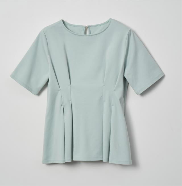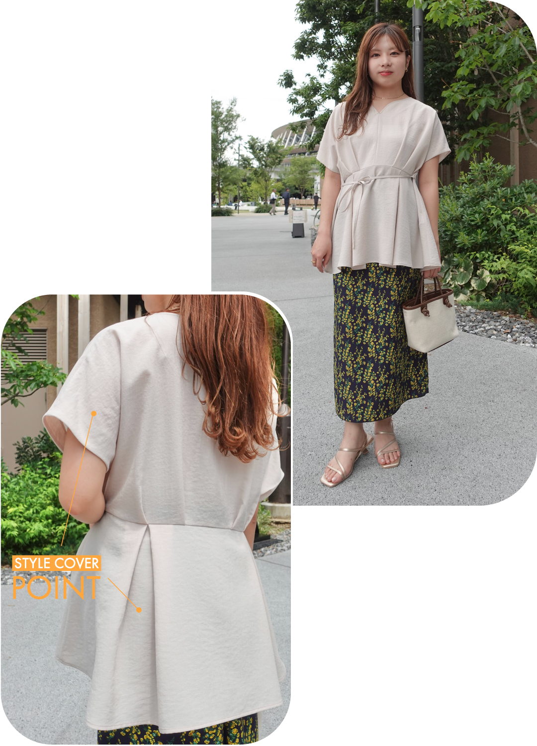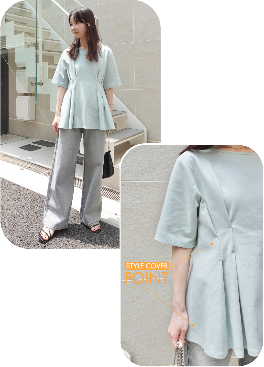 ウエストのタックとペプラムがお腹周りをカバー&スタイルメイク。